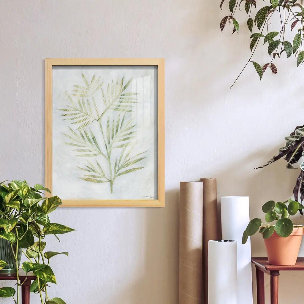 Bring a touch of nature indoors with the 32X42 Green Flair II Floral Gold Frame. This modern, botanical print features hues of green and white, capturing the essence of natural beauty in a vertical orientation. Perfect for adding a refreshing element to your bedroom.