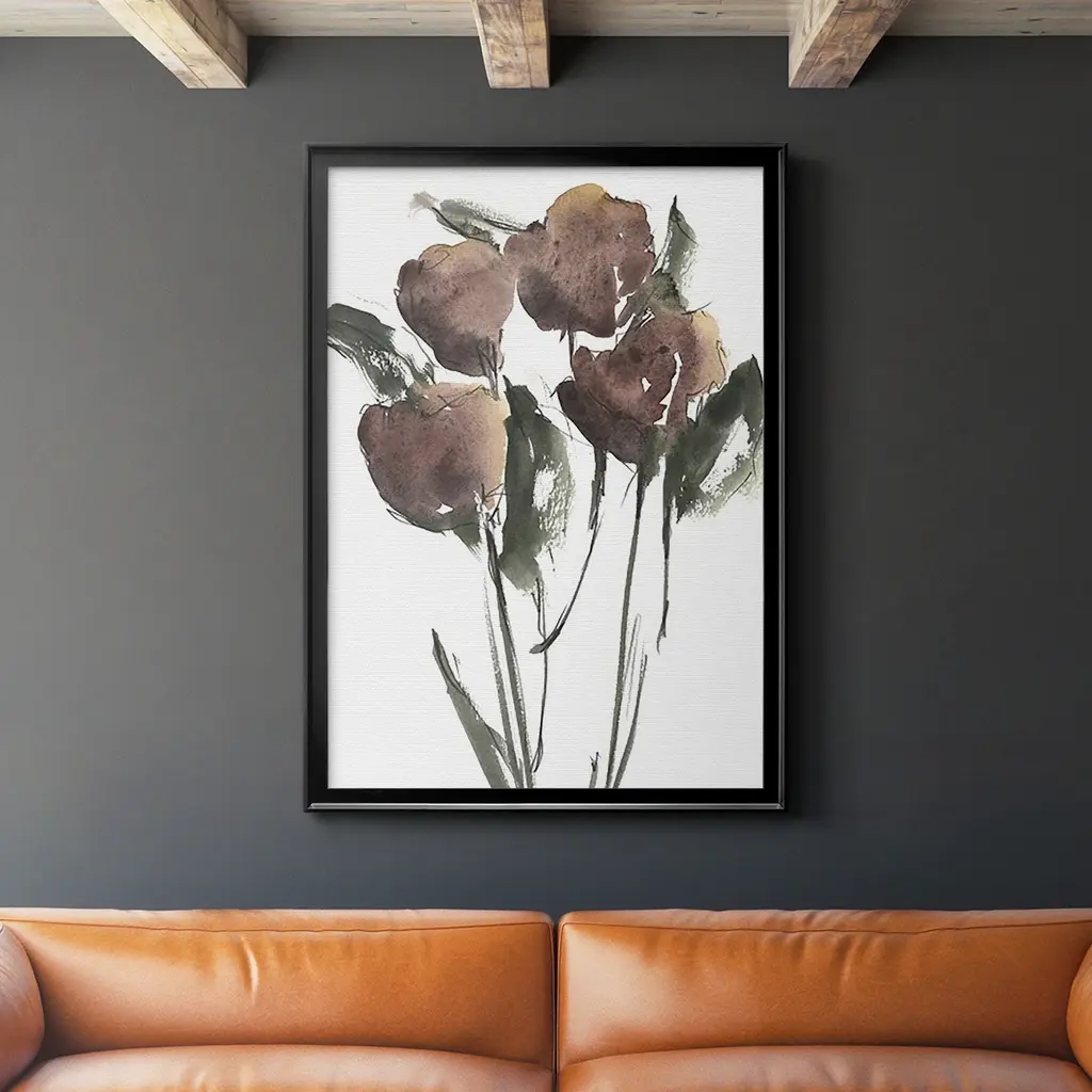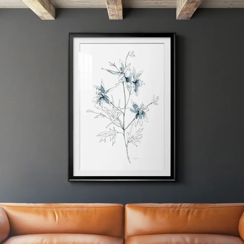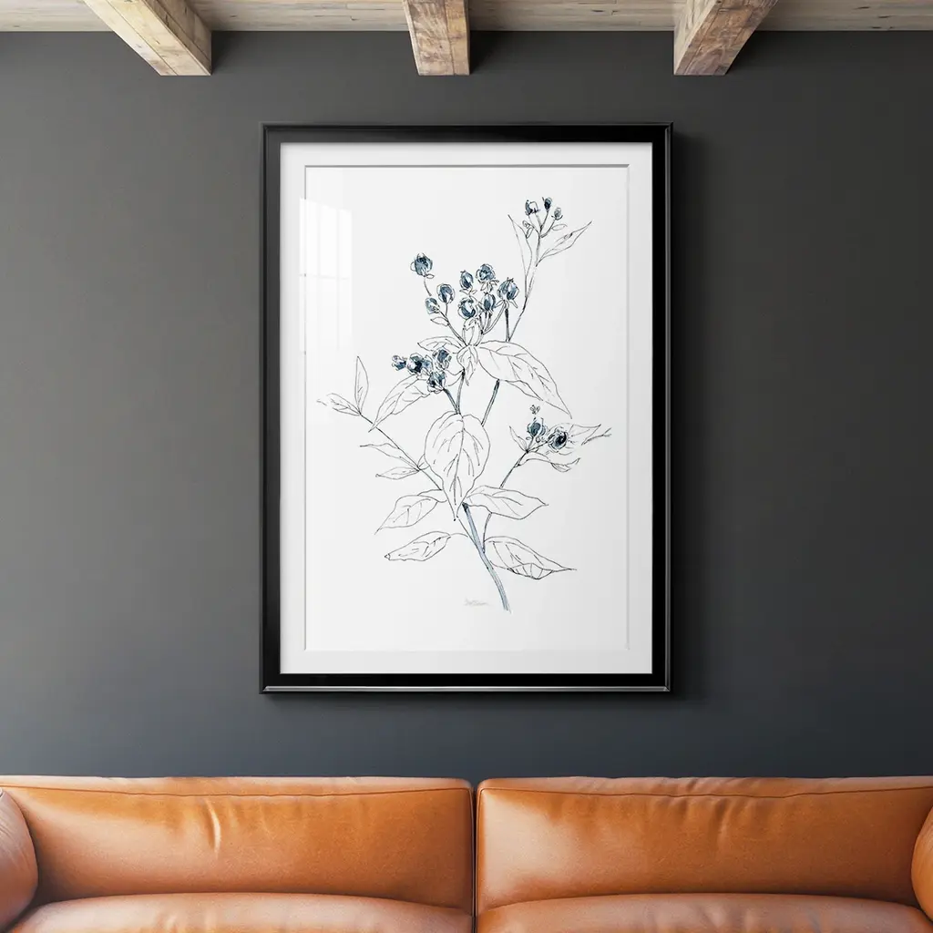 32x42 Rectangle Botanical Floral Fringe 2 Blue Silver Frame | Framed Art | Still Life | Print | Made In The Usa | Vertical
