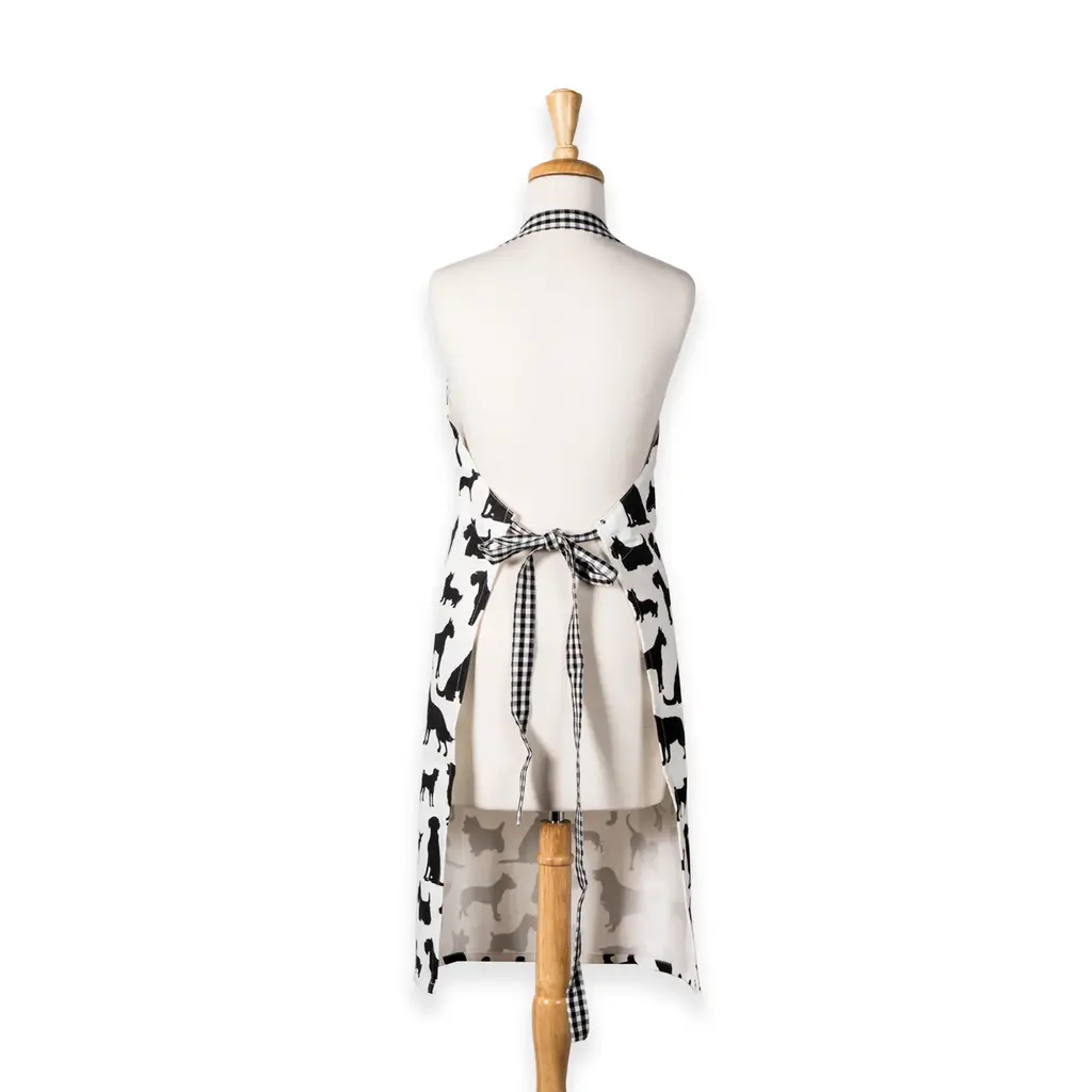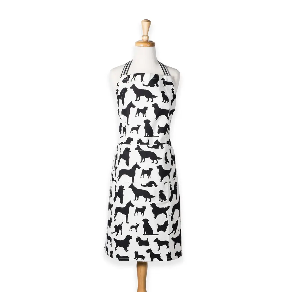35 Black White Dogs Silhouette Printed Chef Kitchen Apron With Pockets - White