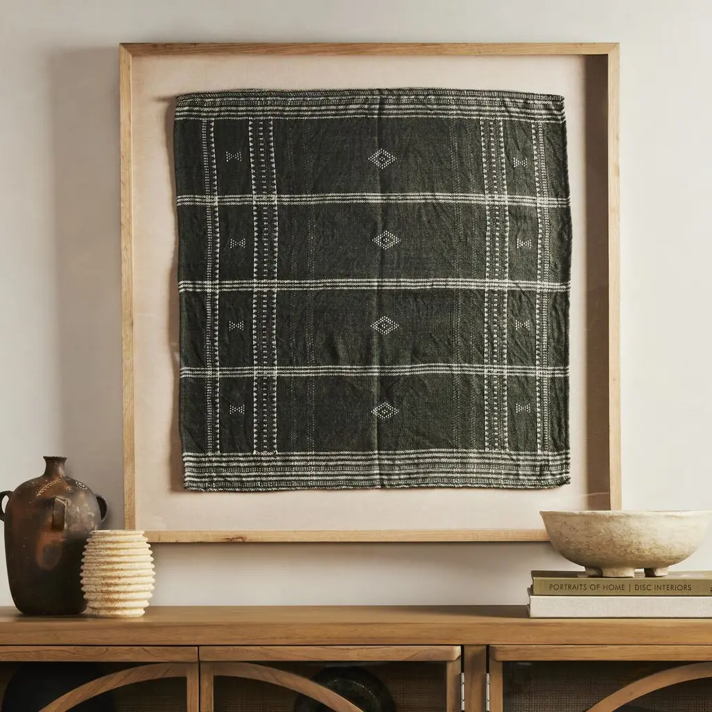 35" X 35" Bhujodi Textile 1 Artwork, White Oak Frame