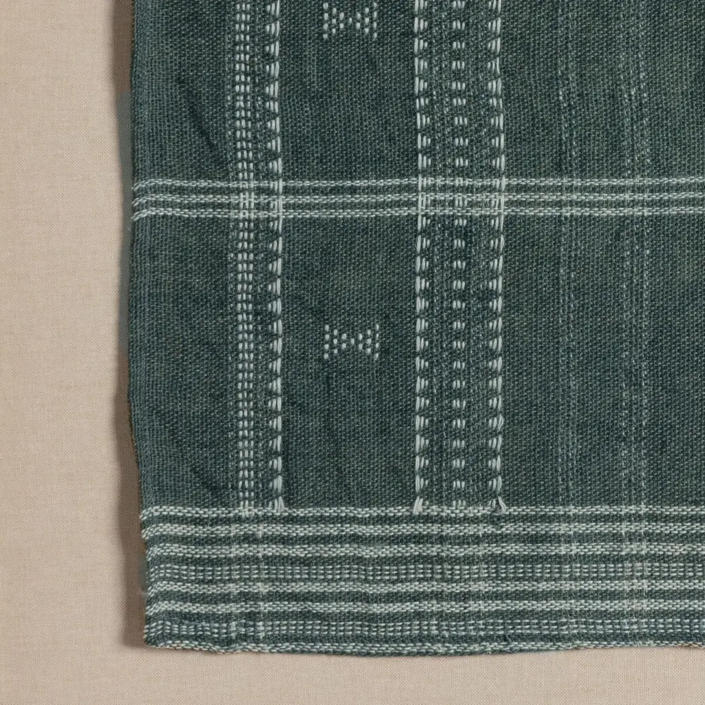 A 500-year-old tradition comes to life on this 100% wool, handwoven textile. Crafted on a traditional frame loom following a tradition created by the Vankars of the Bhujodi village in India, a process that can take up to two days to complete. Finished with fringe tassels on both ends. Handmade in Austin, Texas.