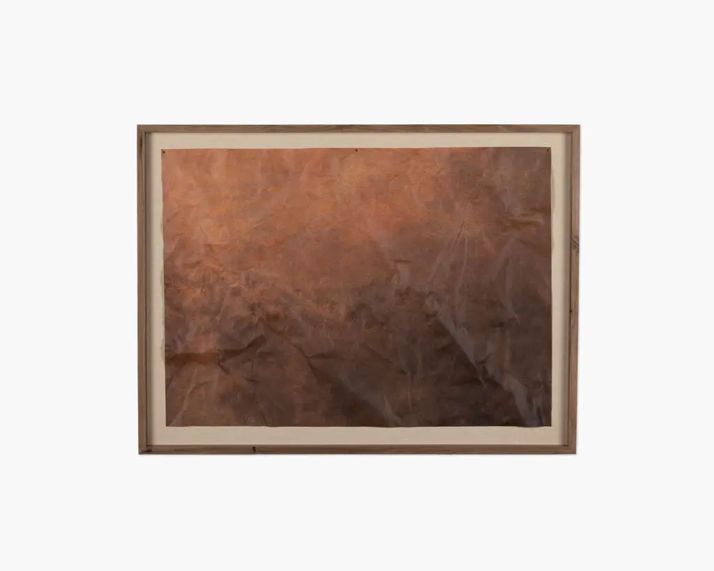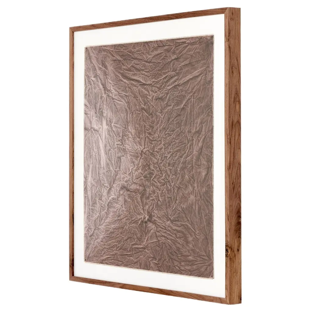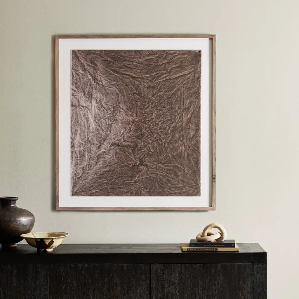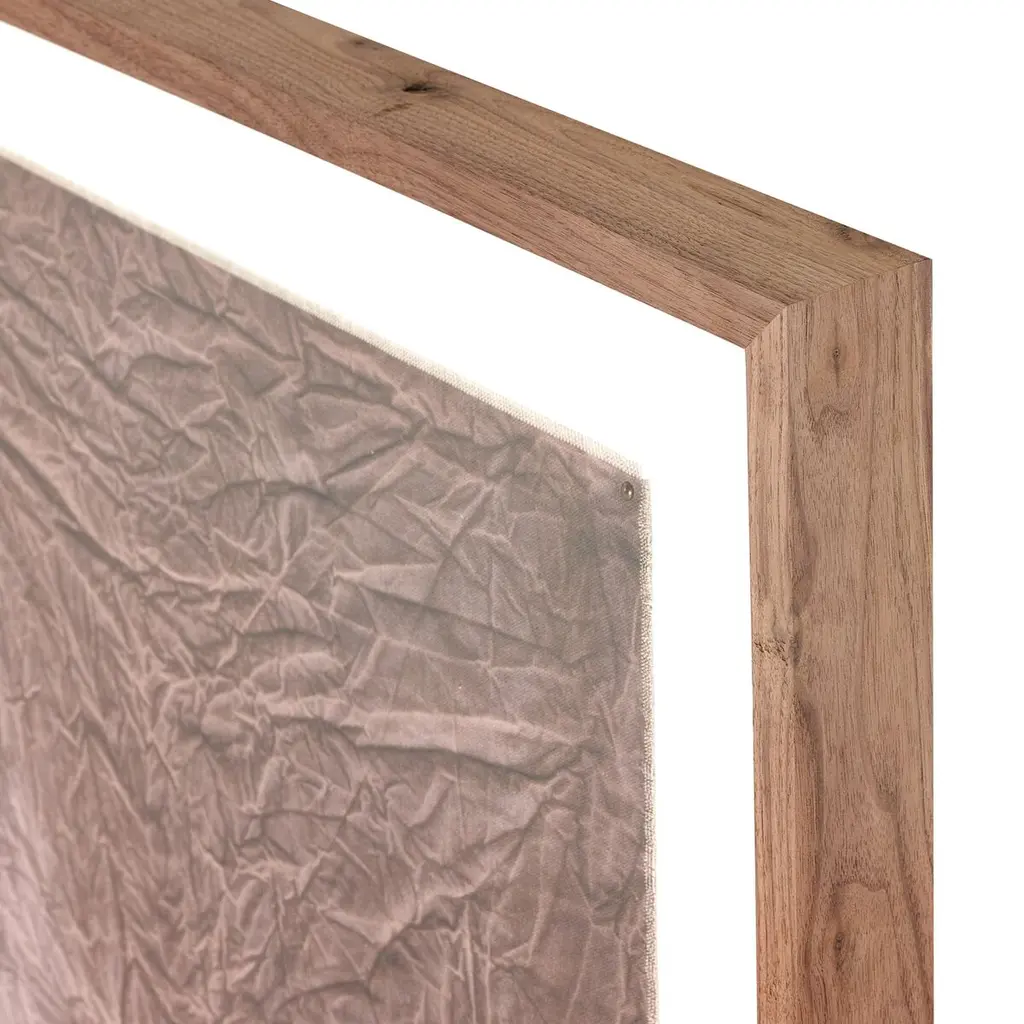 Painted pieces of muslin are folded and manipulated, then scanned and printed on raw canvas with a stringed edge and float mounted with pins on a white backer within vertical grain white oak. A self-taught artist, Molly Franken works with tactile art, channeling inspiration from nature to create abstract, expressive works in watercolor, ink, acrylic and mixed media. Handmade in Austin, Texas.