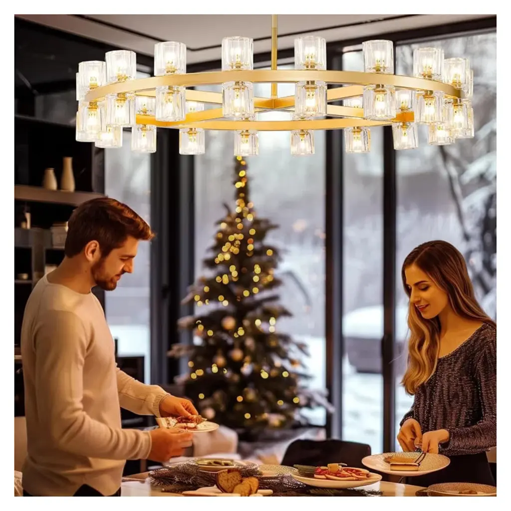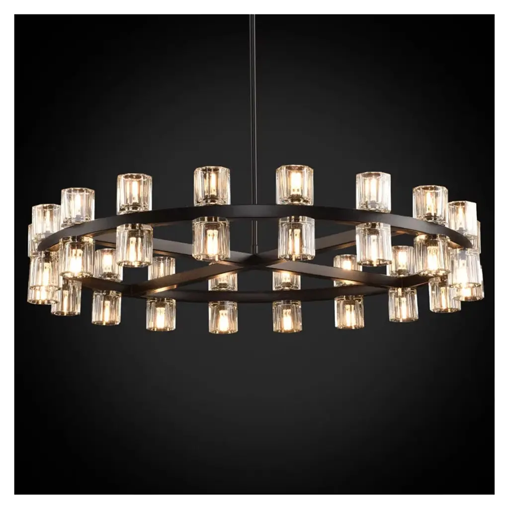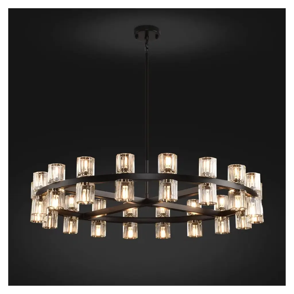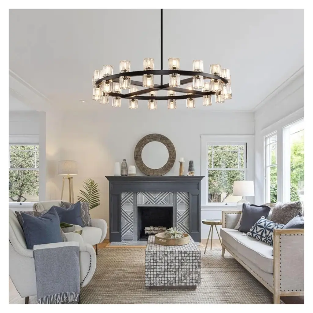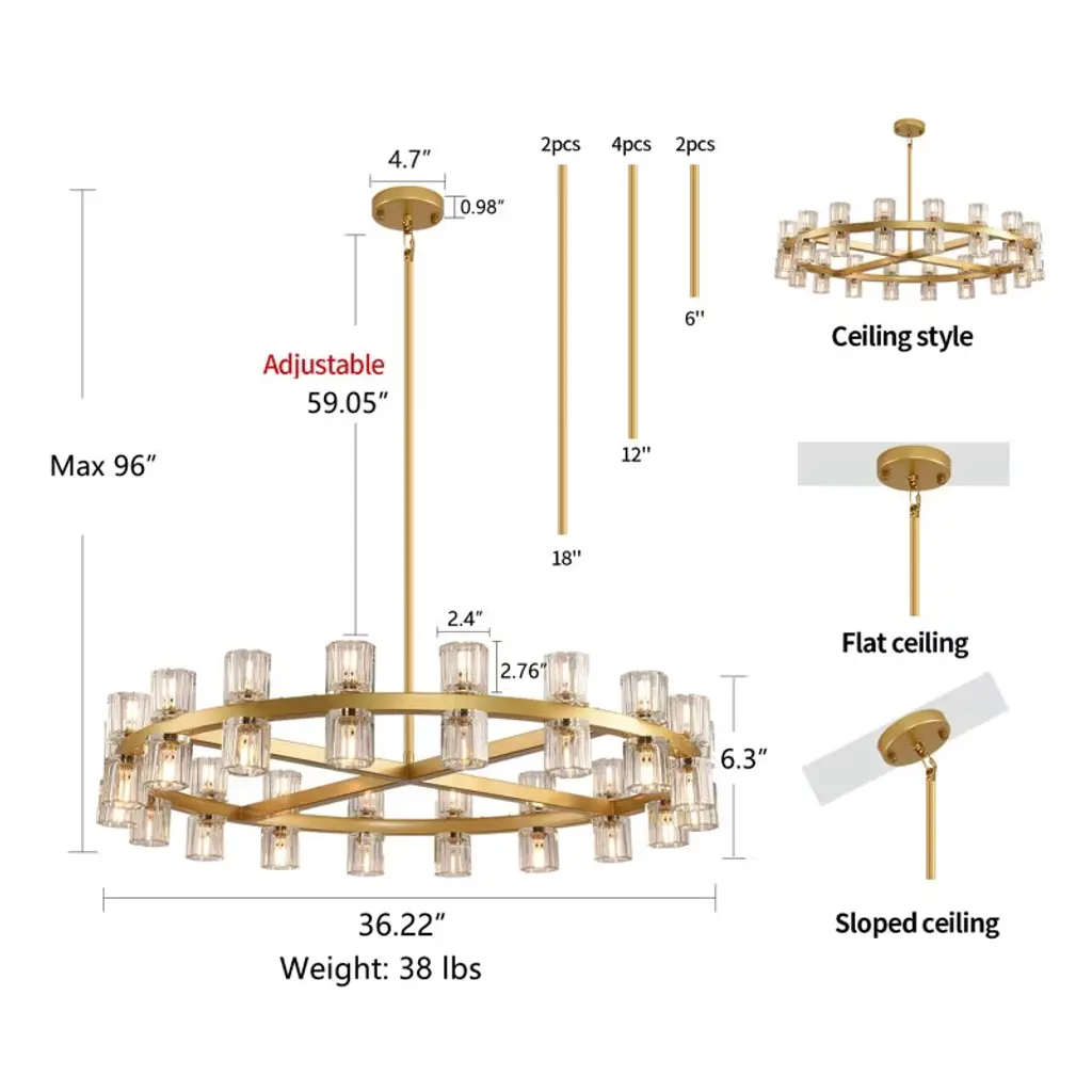 This Wagon Wheel Crystal Chandelier combines elegance and durability with its superior K9 grade crystal shades. Each crystal cup shade features exquisite facets, reflecting stunning and brilliant light. The frame is made of high-quality copper, ensuring a robust structure for long-term safety and stability. The material not only enhances durability but also adds a touch of nobility, perfectly complementing the crystal shades. The chandelier's height is adjustable, allowing you to customize it to suit different spaces and needs. This chandelier is ideal for living rooms, dining rooms, and other home settings, as well as hotel lobbies and banquet halls, making it the perfect choice to elevate any space. Its unique design and exquisite craftsmanship provide not only lighting but also an art piece that reflects your taste and personality.