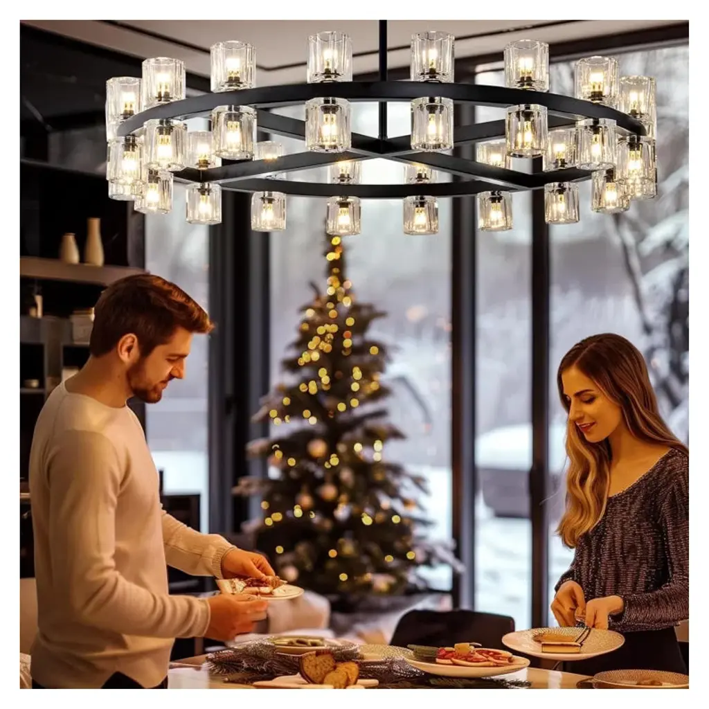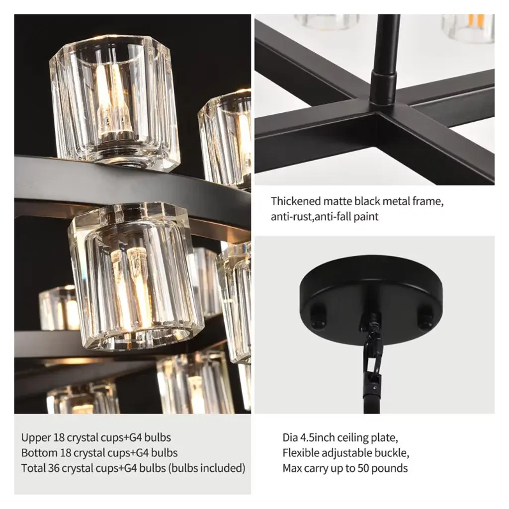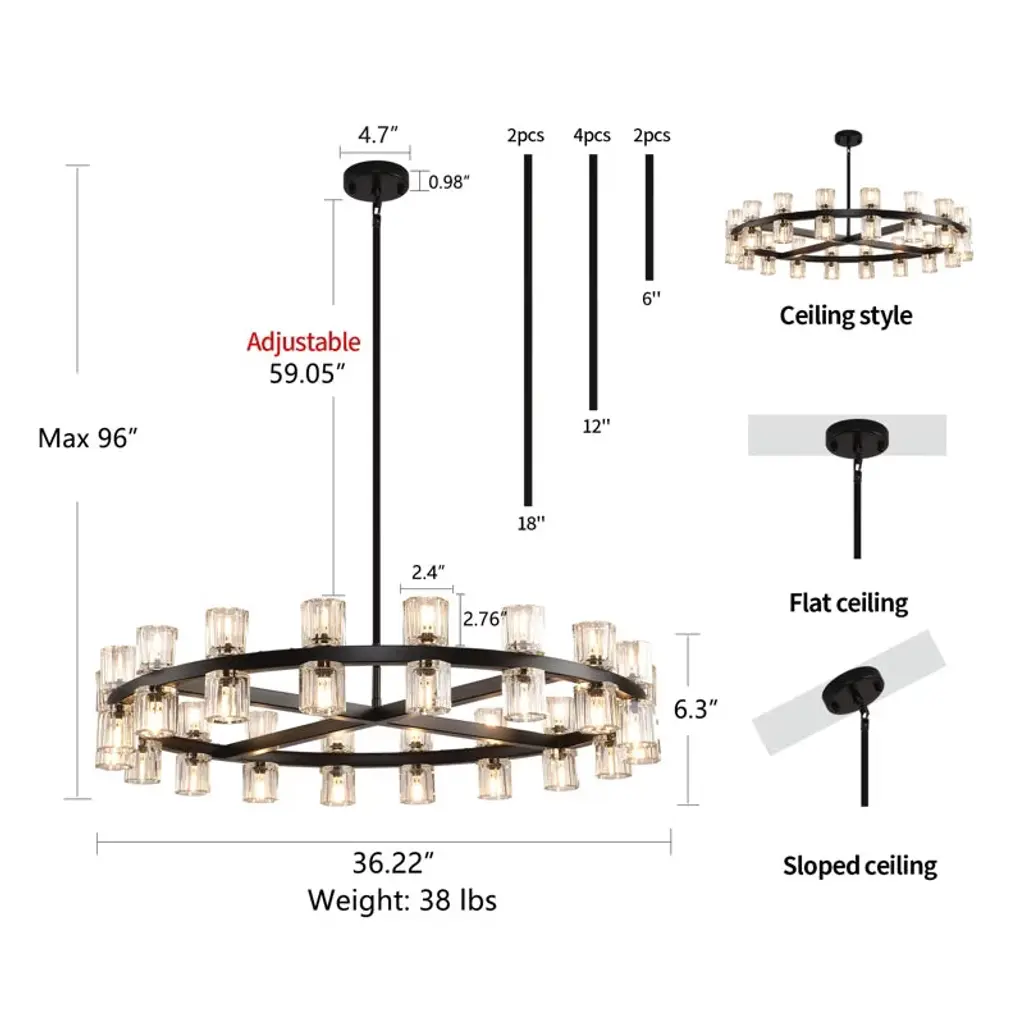 36 Lights, 36 Inch, Dimmable Round Crystal Goblet Chandelier Black