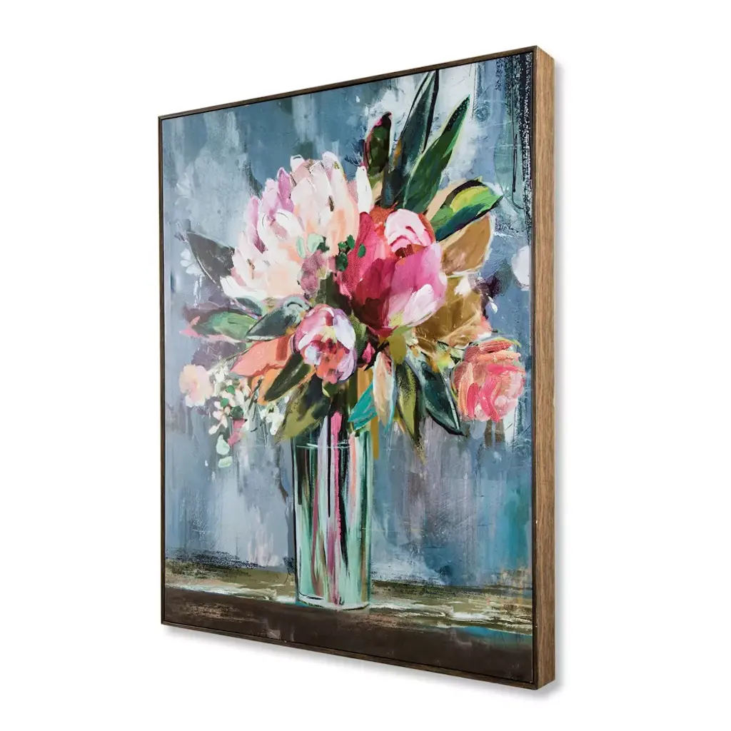 The right piece of art can pull a whole room together, and this Framed Floral Still Life Canvas from Opalhouse™ makes the perfect finishing touch to your living space. This floral wall canvas features a beautiful still life with large pink blooms set off by a spray of green foliage and a gorgeous blue background. A flat-edge brown frame adds depth to this piece without stealing the show, and the medium dimensions of this botanical wall art make it an ideal decorating choice for a variety of spaces. This is your house. Where you create spaces as bold as your spirit. Collect objects as inspired as your dreams. Find pieces that remind you of every place you've been. Discover stories to inspire everywhere you have yet to go. This is Opalhouse.
