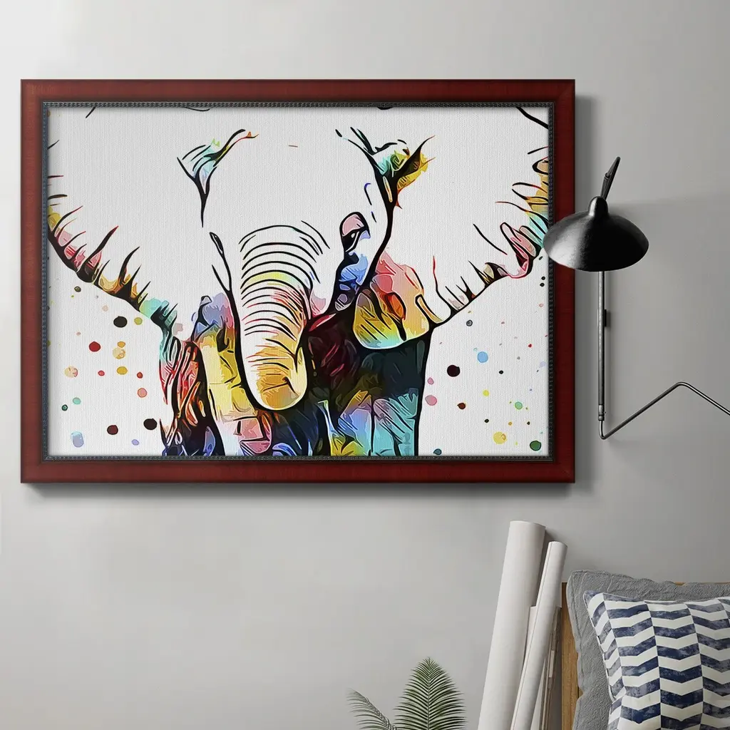 Enhance your living space with the vibrant "The Mighty Elephant With Gallery Wrap Canvas". This stunning piece of canvas art features a colorful depiction of an elephant in striking blue and red hues, perfect for adding a touch of rustic charm to any room.