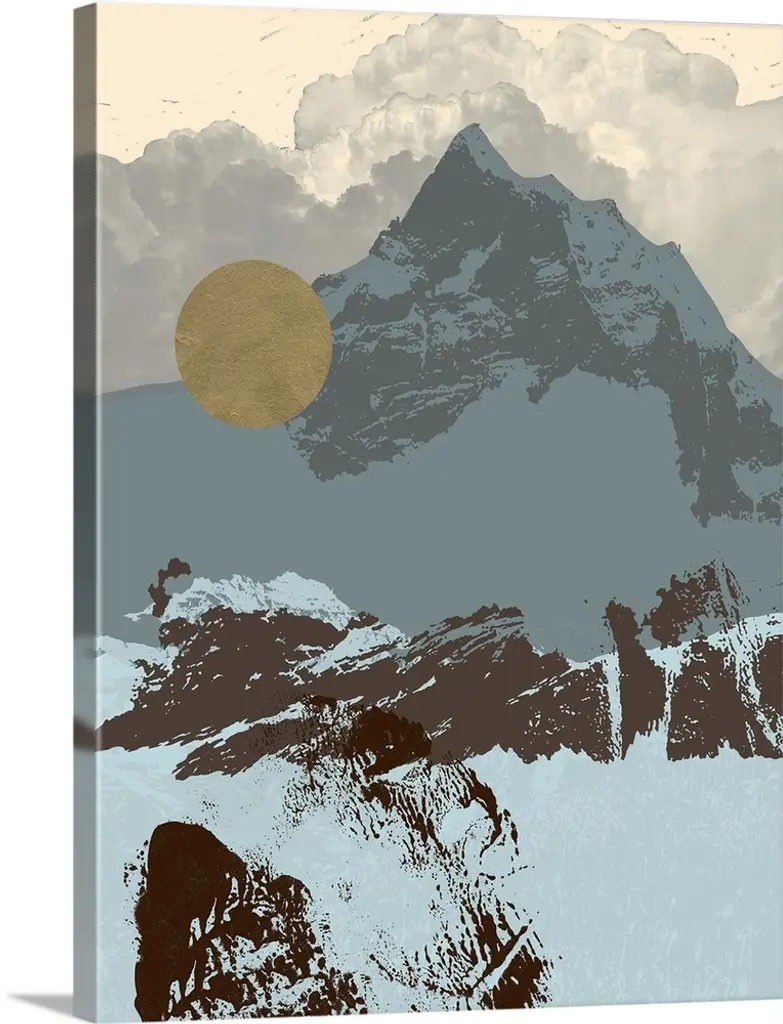 Enhance your home decor with the stunning 36"X54" Cool Peaks III Gallery Wrap Canvas. This scenic print captures the breathtaking beauty of natural landscapes, adding a touch of tranquility to any room. The harmonious blend of blue and brown tones creates a soothing ambiance, perfect for a rustic or contemporary setting.