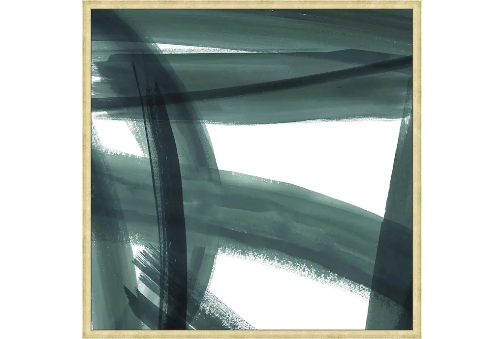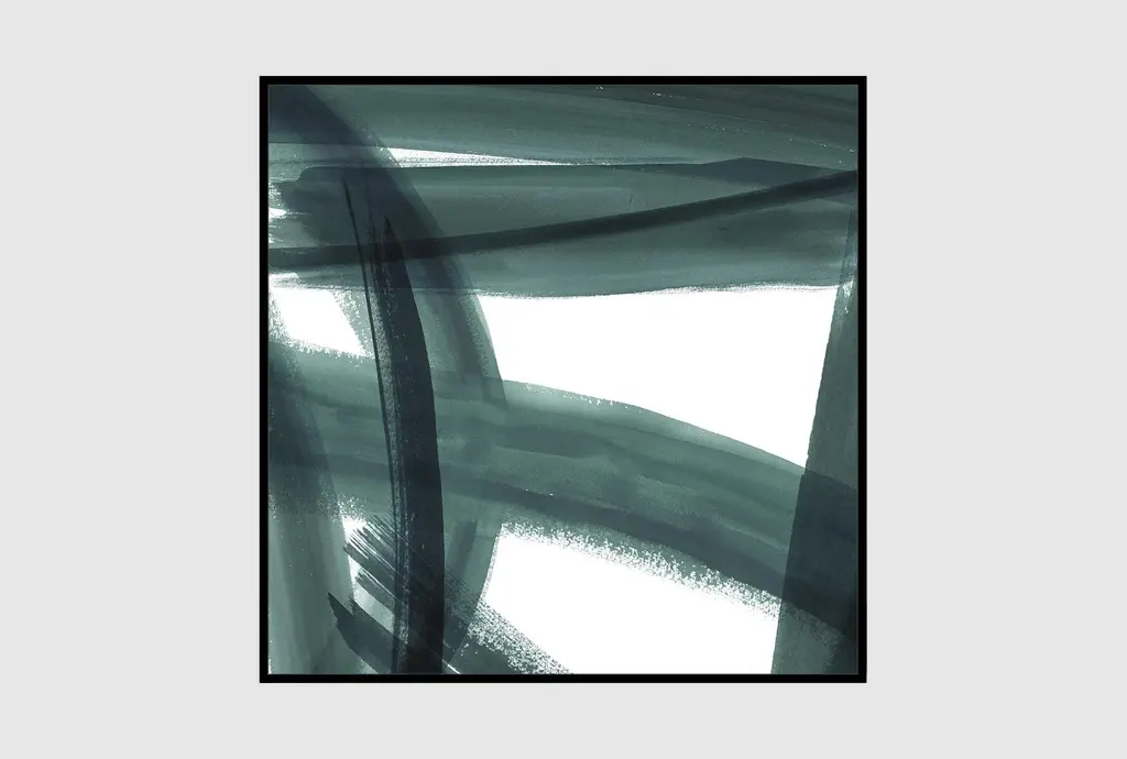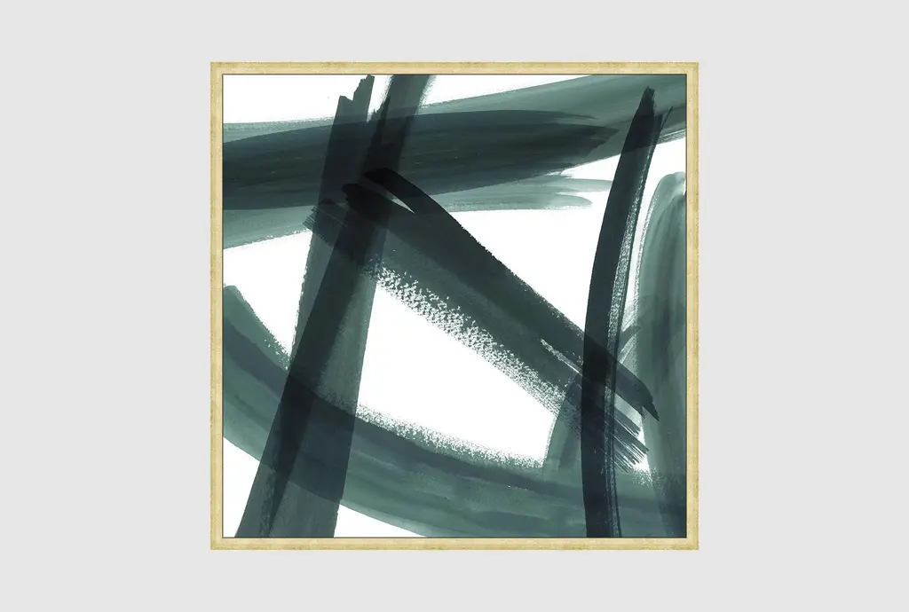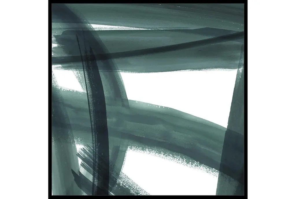 38x38 Abstract Green Brush Strokes Ii With Black Frame | Framed Art | Made In The Usa | Print
