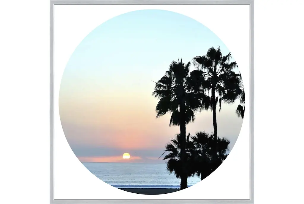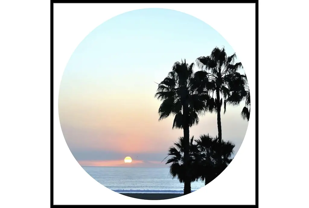 Bring the serene beauty of a coastal sunset into your home with the 38X38 Coastal Sunset Palm Black Frame. This framed art captures the tranquil moment of the sun setting behind palm trees, offering a peaceful and picturesque addition to any room. Made in the USA, this square piece is perfect for creating a coastal vibe in your space.