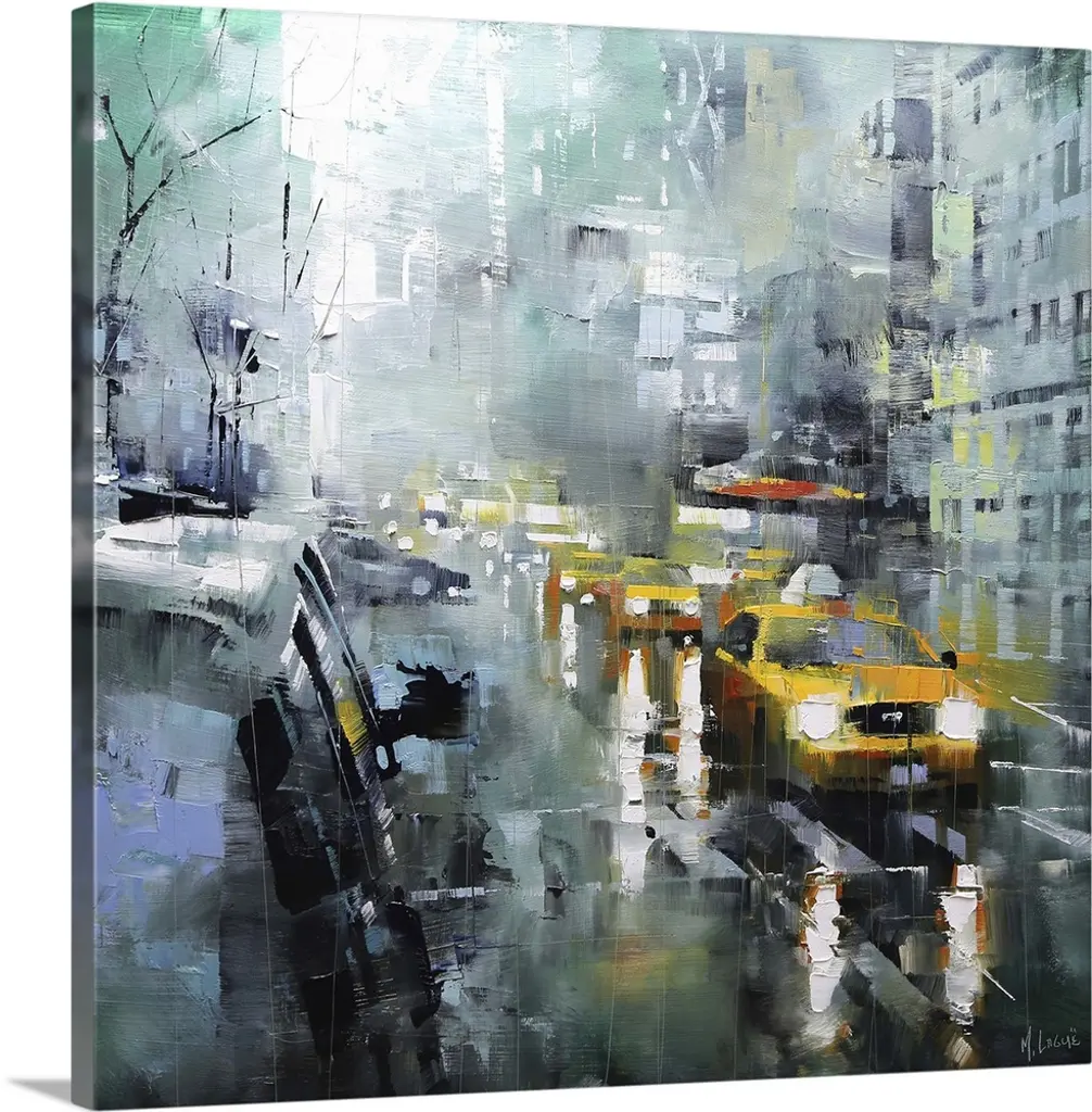 38x38 Rainy Days In The City With Black Frame | Made In The Usa | Framed Art | Print | Abstract