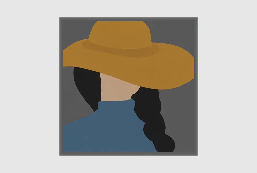 Enhance your home decor with the 38x38 Yellow Hat with Walnut Frame. This striking piece of framed art features a vibrant yellow hat set against a contrasting blue background, adding a pop of color to any room. Made in the USA, it combines modern design with quality materials.