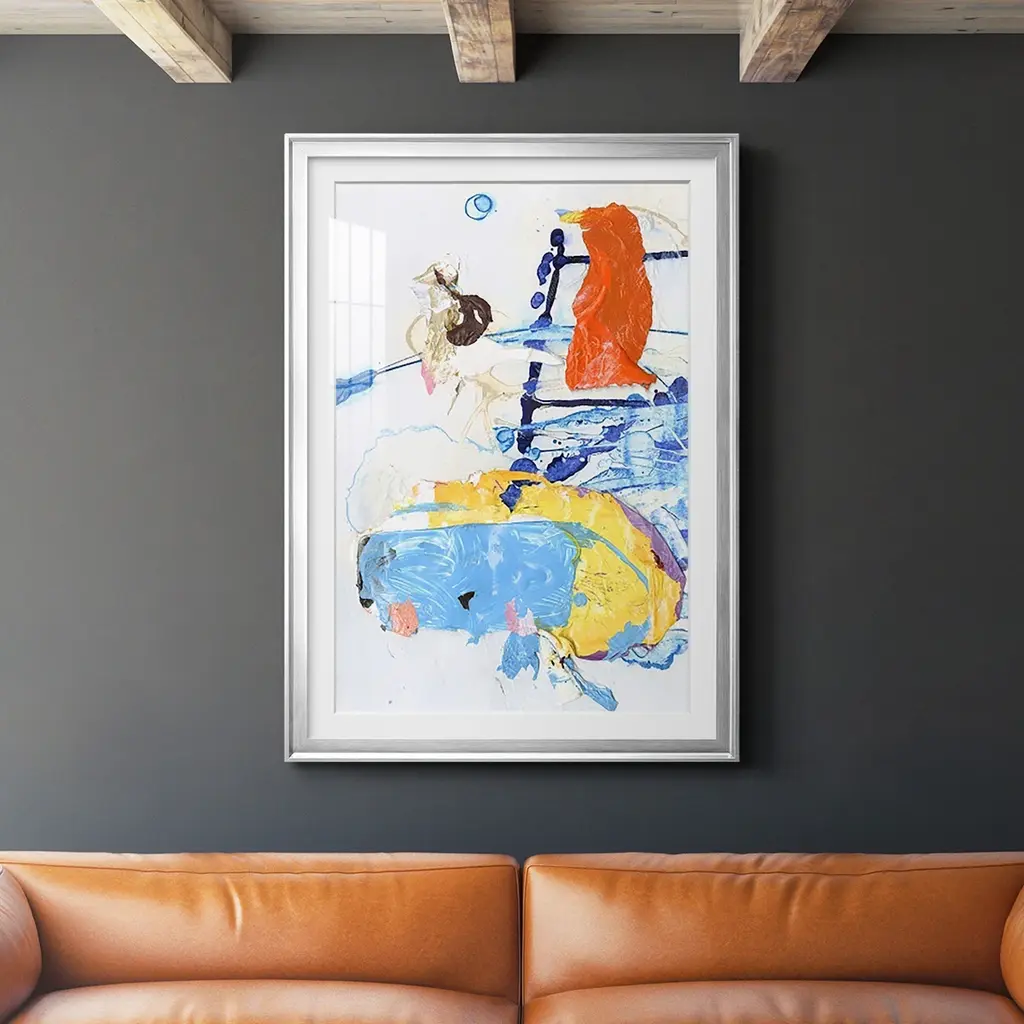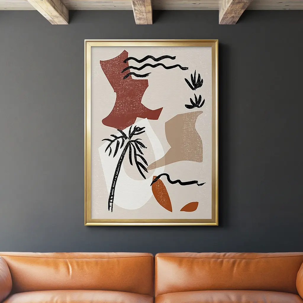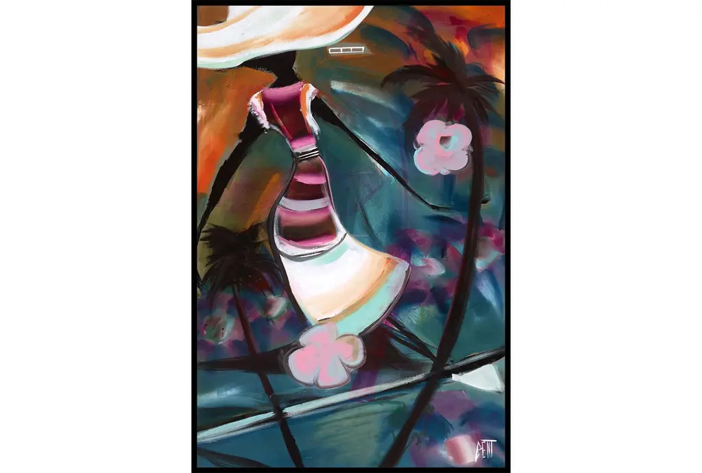 Bring the vibrant energy of summer into your living room with the 38"x56" Aloha Surf with Black Floater Frame. This stunning piece of scenic art features a vertical orientation, showcasing a colorful blend of orange, blue, black, and white. The stretched canvas is framed in a sleek black floater frame, making it a striking addition to any modern home decor.