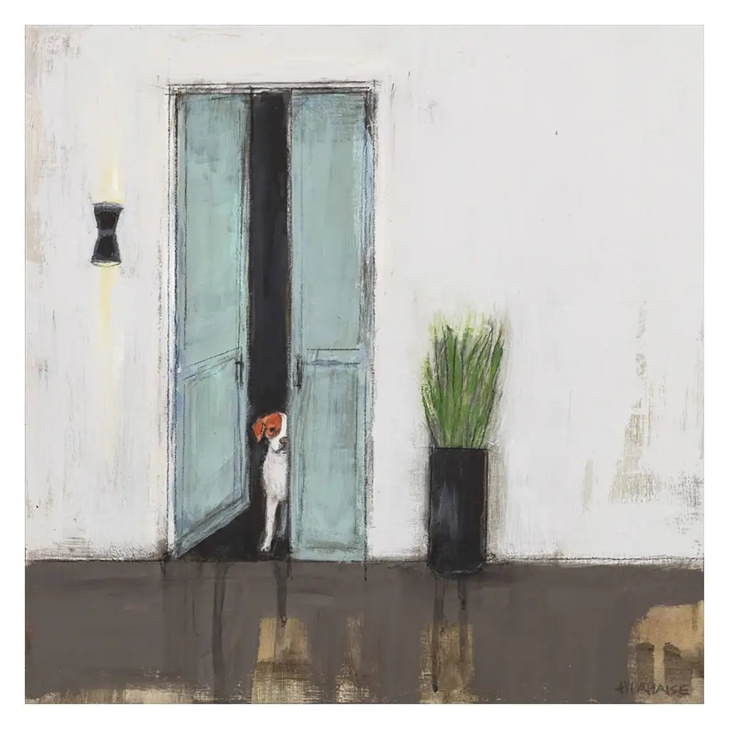 Enhance your living space with the 38X56 Santorini I framed art print. This vertical piece features a stunning architectural design in blue and white tones, perfect for adding a touch of coastal charm to any room. Made in the USA, this artwork is set in a white frame, providing a clean and modern look.