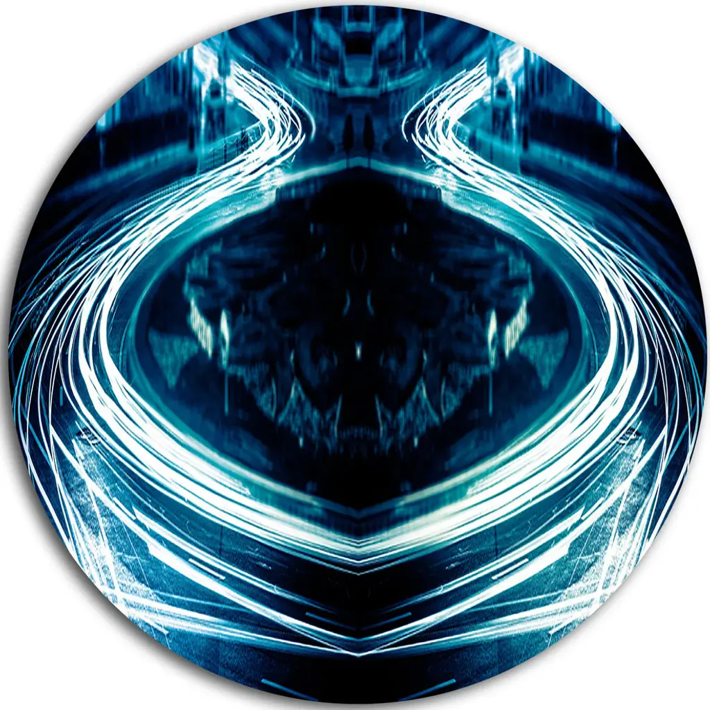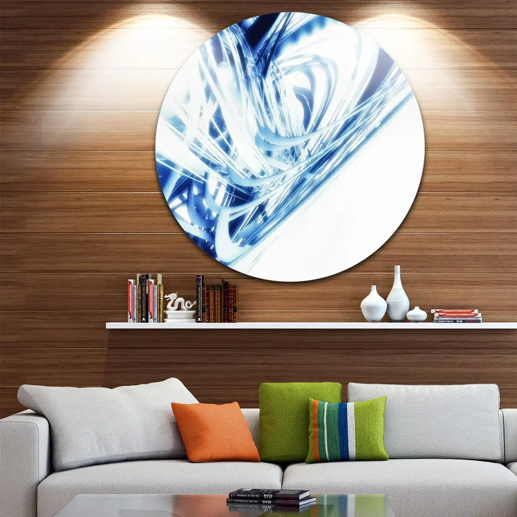 Bring Contemporary Abstraction to your home with this large Circle Metal wall art. This 3D Abstract Art Blue Fractal Metal Artwork makes it the focal point of any room or office. - White Gloss Coating ensures colors are extra vibrant with light reflection.- Aluminum grade Sheet Metal with 1 inch mounting frame on the back giving the illusion that the artwork is floating on the wall..- Mounting Brackets are included along with instructions.- High Quality Digital images are created directly into a glossy aluminum panel producing a stunning and captivating print into the glossy finish of the metal.- Water, Fire and Scratch resistant HD Aluminum panels.- Looks better than any photo paper and guaranteed to last at least 20 years- Easy to clean with a microfiber cloth. Colors are far superior to regular Canvas Art. - Easy to Hang