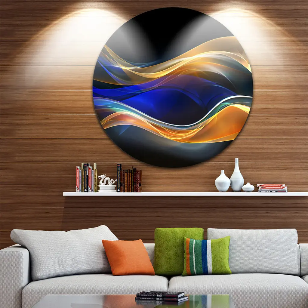 3D Gold Blue Wave Design, Abstract Digital Art Disc Metal Wall Art, 36"