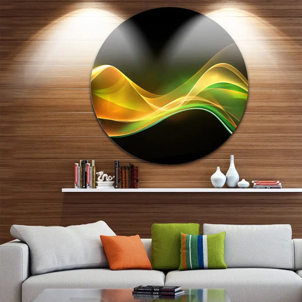 3D Gold Green Wave Design, Abstract Digital Art Disc Metal Artwork, 11"