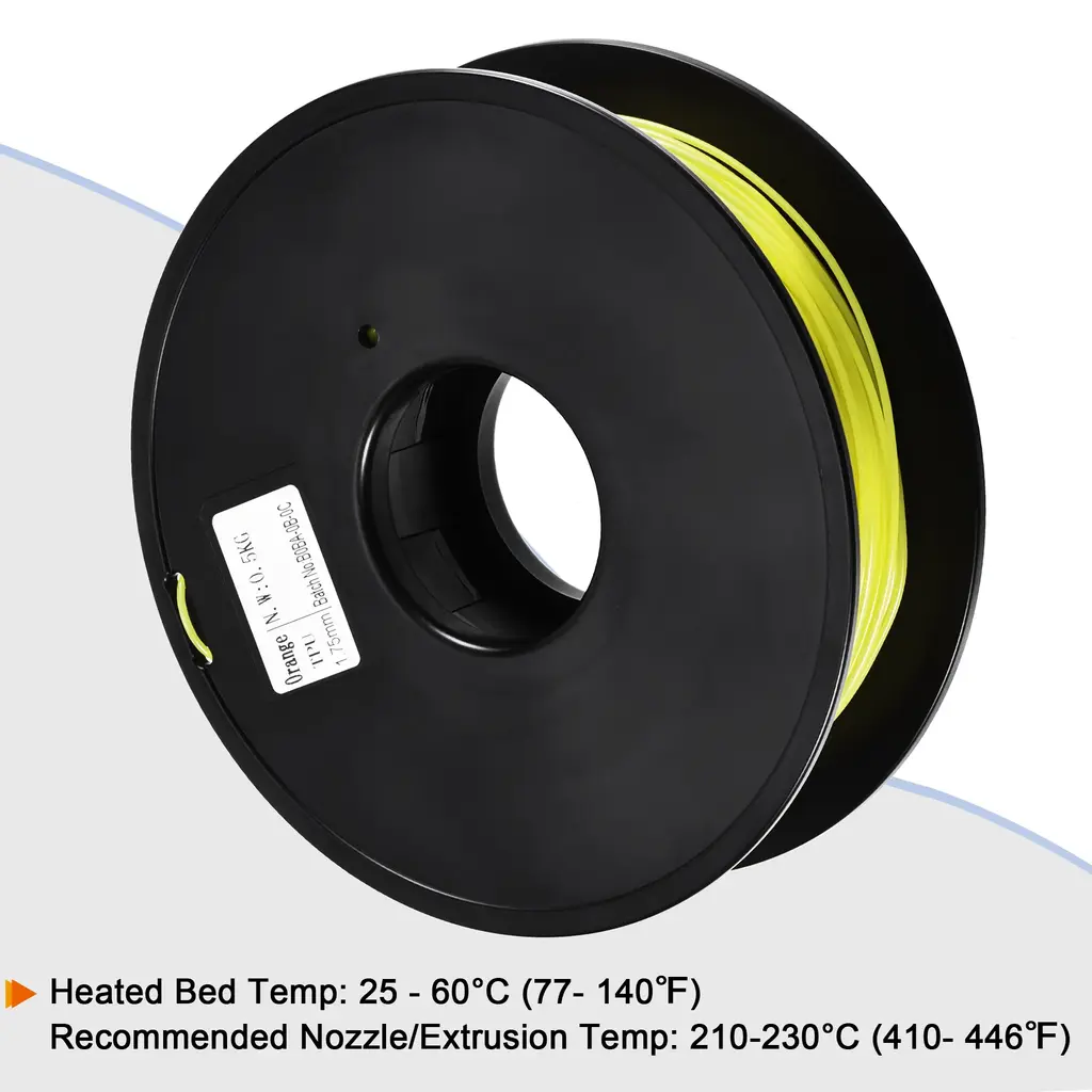 What is this?diameter(+ / - 0.05mm) 3D printer filaments, designed to fit the most common 3D printers, ensure that your printed matter is smooth and stable with good bed adhesion.What will I get?1Pcs 3D Printer TPU Filament; Diameter: 1.75mm; Recommended nozzle/extrusion temp: 210-230°C (410- 446℉), heated bed temp: 25 - 60°C (77- 140℉)Are there any advantages of the product?Made of flexible polyurethane(TPU) filaments can be formed easily, the colors are vivid, and the printing process has no peculiar smell.How to use it?Install the filament on the hanging parts, use cutting pliers to cut the end of the filament, straighten the filament by hand, and force the materials into the feeder.What should I notice?It is recommended to use the model of short-range extrusion. Do not print a model that is too high. To avoid entanglement, the filament should be fixed in the slide valve hole after each use, then seal it with a plastic bag and store in a cool and dry place.
