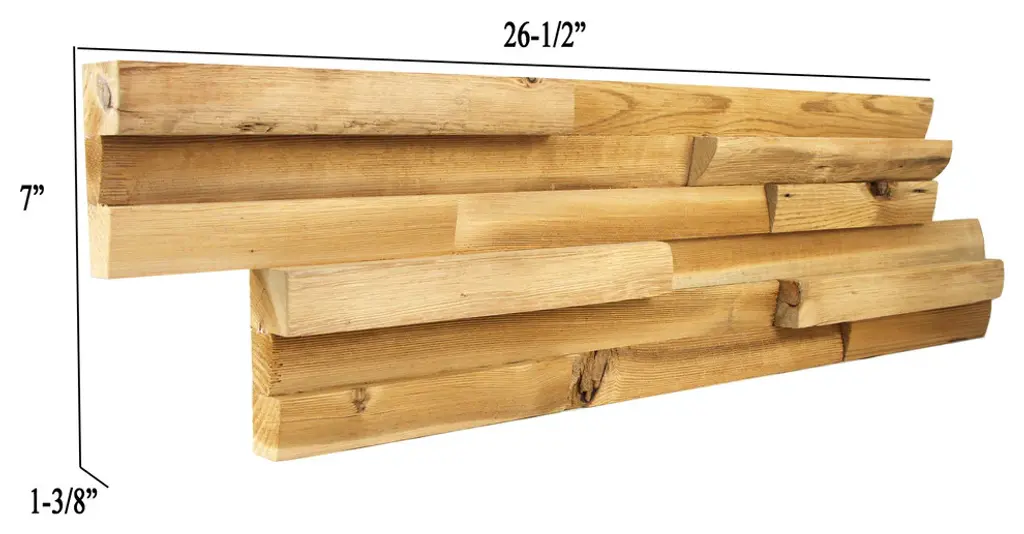 Tired of looking at your dull wall or seeking alternatives to enhance and update your existing wall decor? Consider our natural reclaimed nature wood panels! Weather it''s a contemporary rustic approach or a modern design, our solid textured reclaimed wood wall panels provides a series of color choices and patterns, you will be ensured to select one that will compliment your decor and design to provide an extraordinary finish. Each panel has a interlocking or finished edge depending on the design, so when in connection with other panels, it creates a minimal sleek seamless appearance. This is a natural wood product that may have color variations, knots, pin holes, mineral streaks with varying surfaces textures which is the beauty of these elements of wood providing a rustic wall design. These solid reclaimed Wood Wall Panels can be installed vertically, horizontally and diagonally with the ability to construct your own overall pattern to bring you a beautiful vivid accent wall to your stylish and wonderful home or office! Reconstruct and redesign your wall with 3D solid natural wood panels. Natural wood provides a trendy modern interior design. With its natural colors, shapes and textures, it provides an eco-friendly contemporary touch to any interior design and decor. Decorative textured wall panels could turn any existing wall to a contemporary and new stylish design accent. Back of panel provides prefabricated ridges for in prevention for shrinkage and expansions due to weather changes which will NOT alter your overall appearance of your wall. This easy and lightweight application of reclaimed wood panels accent will transform and complete your true own personalized design on almost any solid surface!Preparation and installation: Remove all accessories from wall where products have been planned for installation. Uneven area must be adjusted to ensure it is firm and leveled. Clean and wipe wall dry. Plan the placement of each panel with its natural characteristics. With a nail gun, secure the panels in the area that is needed to complete the installation of the panels any events of uneven walls, textured walls and temperature changes for the finishing touch. Full installation instructions and reference photos available!-Solid 3D Wood Panels will turn any dull wall décor into a lively vivid focal point for a rustic and contemporary modern wall design-Beautifully solid construction 100% Reclaimed wood provides natural wood textured elements - Design flexibility! Option available to install to accustom your wall décor design or any solid surface area-Simple Installation and Easy Maintenance! Use a hardwood cleaner or a soft and dry brush!-Each Panel Size 26-1/2" x 7" x 1-3/8" / Each Box Come with 9 Panels it can cover 10.4sqft
