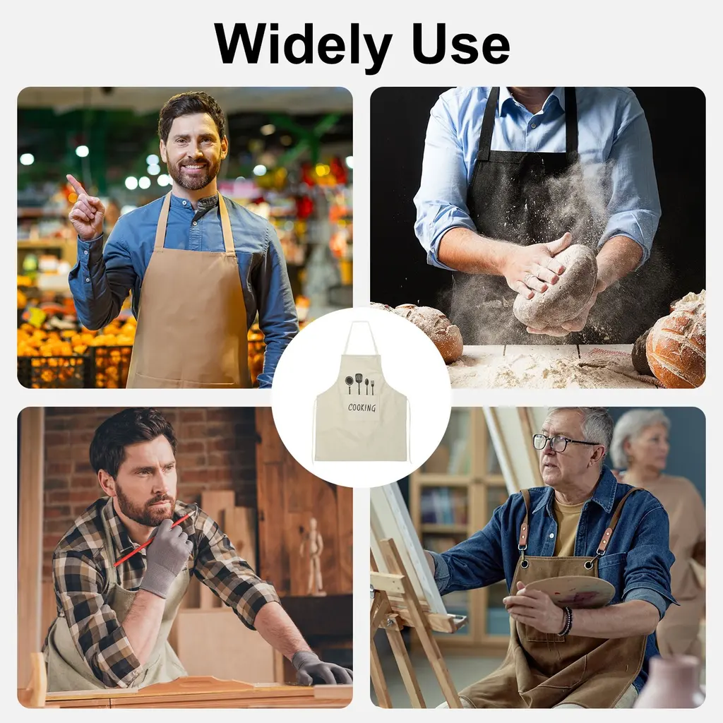 The bib is made of PVC fabric, which is strong, breathable and partially waterproof, helping to prevent minor spills and isolating oil and dirt from penetrating. The surface is smooth and not easy to adhere to dirt, easy to clean and suitable for long-term use.The hang neck design ensures that the apron fits you securely and does not slip off, improving your work efficiency. The double pocket design provides enough storage space for you to take items at any time. Convenient and practical waist drawstring, suitable for people of different body shapes.The bib apron ensures your body is widely covered to prevent your clothes from getting dirty. Can be used for cooking, baking, grilling, painting, and pottery. Suitable for chefs, baristas, kitchens, bartenders, bistro staff, grills, etc.Aprons need to be machine washed in cold water, dark colors washed separately. Avoid using bleach and tumble dry only on low heat. Do not iron or dry clean the apron to maintain its quality and durability.