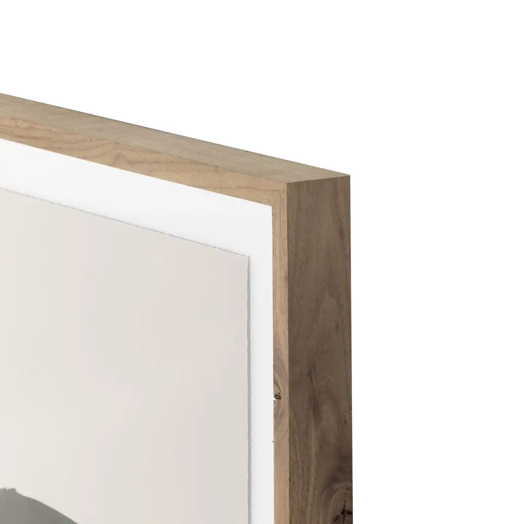 A seasoned graphic designer with a penchant for modern minimalism, artist Dan Hobday finds inspiration in the coastal landscapes of his hometown of Devon, England. Framed within rustic walnut for a gallery-style look. Handmade in Austin, Texas.