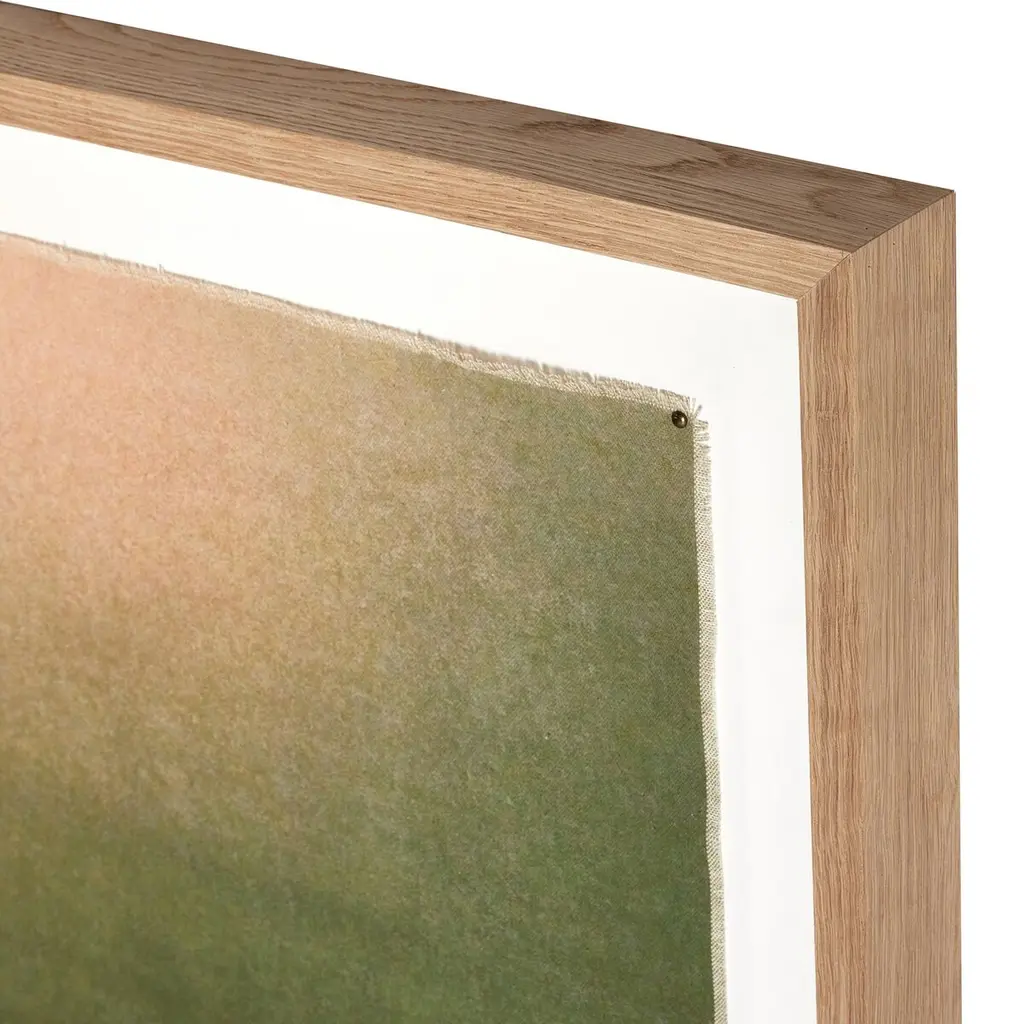 Ethereal and dreamy, abstract natural hues blend together. A photo is printed on raw canvas with stringed edges, float mounted with pins within a vertical grain white oak frame. San Francisco photographer Toni Toscano describes her work as nostalgic and impressionistic, finding inspiration in wistful memories. Handmade in Austin, Texas.