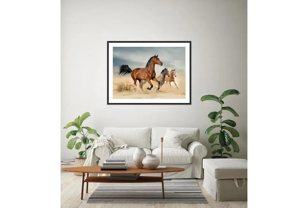 40x30 Herd Of Wild Beautiful Horses With Black Frame | Framed Art | Animals | Print | Made In The Usa | Horizontal