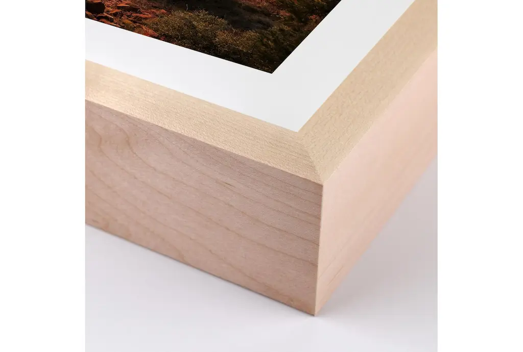 This modern Sedona at sunset print features a natural frame and is made with multi-media materials in a multicolor design. The photo paper is accented with maple, adding a touch of blue to the piece.