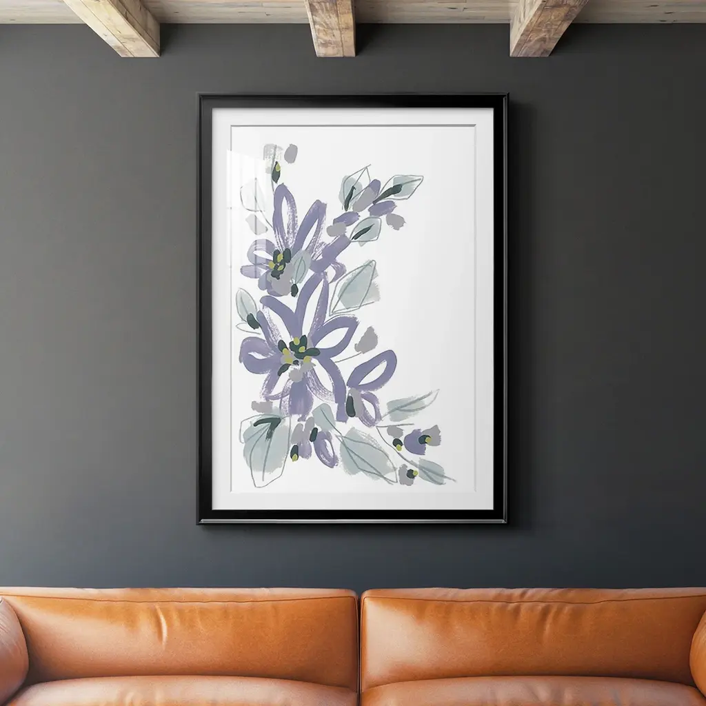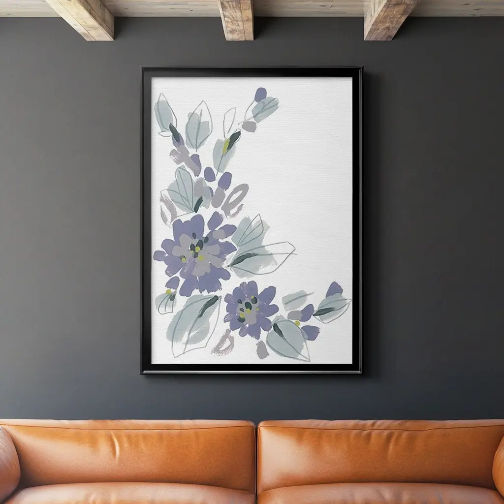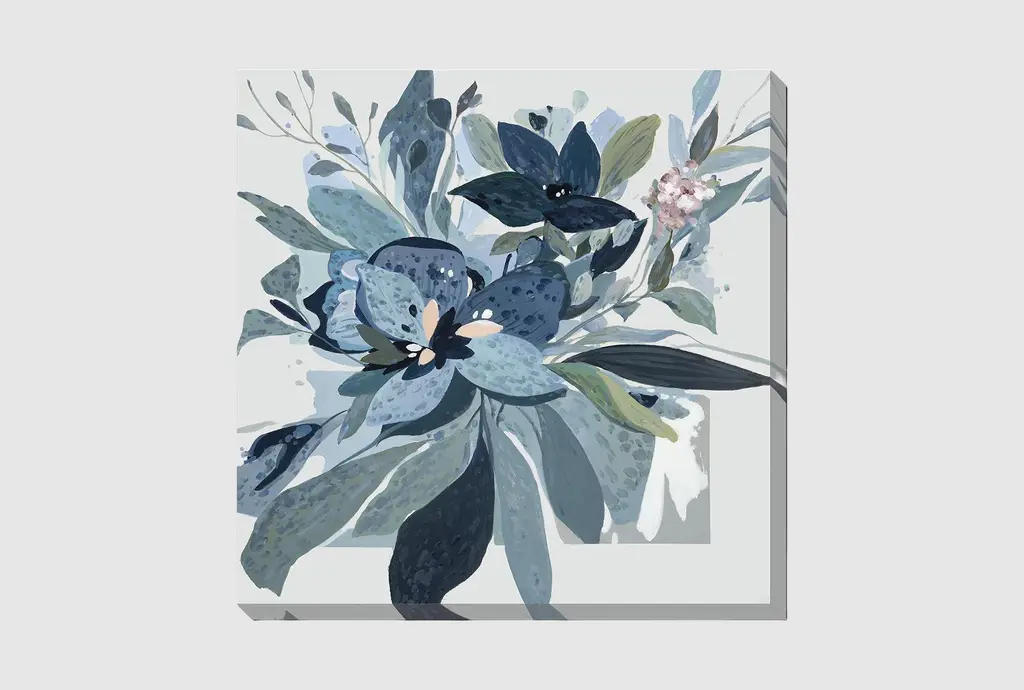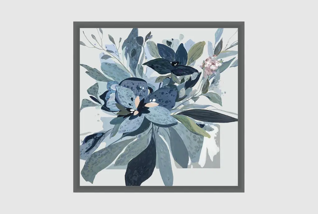 40x40 Blue Bouquet | Grey Frame | Square Botanical | Still Life | Made In The Usa | Print | Framed Canvas Art