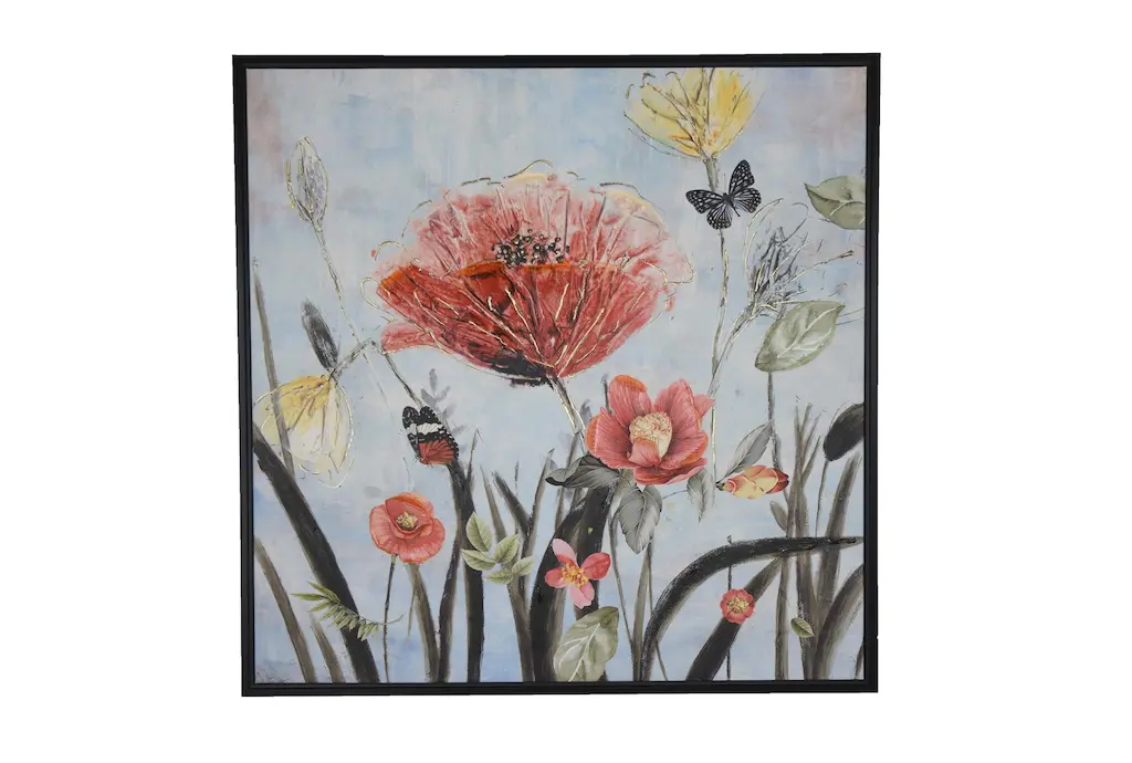 The 40X40 Floral Garden II is a traditional style canvas artwork with a vibrant red color scheme. Ideal for adding a touch of elegance to your bedroom, this piece is mounted on a sturdy wood frame for added durability.