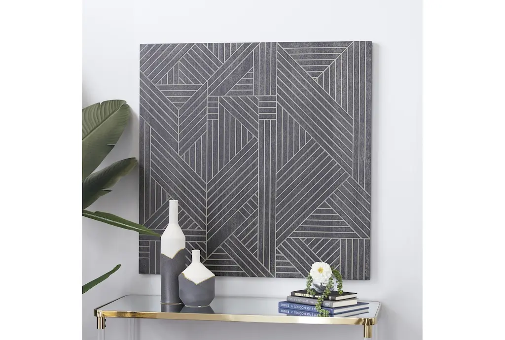 Create an excellent focal point on your walls paired with some cute accent tables, and level up your home with this amazing wall Decor. Position this large panel over wide furniture to draw attention to that corner of the room.. This item ships in 1 carton. Can be hung vertically using the D-rings on the back; nails and screws not included. Suitable for indoor use only. This item ships fully assembled in one piece. This is a single black colored wall sculptures. Modern style.