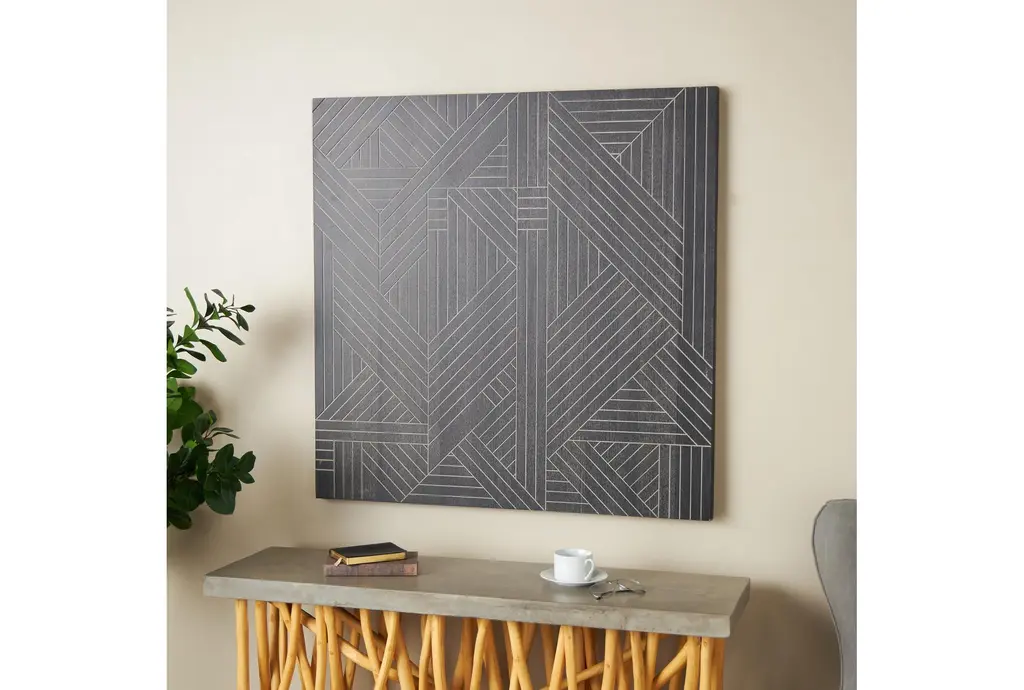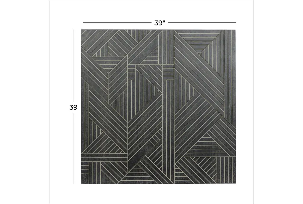 40x40 Inch Black Natural Wood Geometric Geo Pattern Wall Decor | Square
