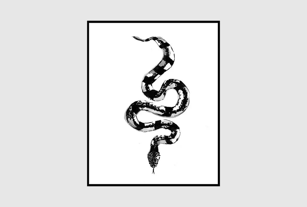 Enhance your space with the striking 40X50 Black and White Snake gallery wrap canvas. This rustic piece features a bold animal print that stands out in any room. Perfect for adding a touch of nature to your decor, this large vertical rectangle canvas art is made in the USA.