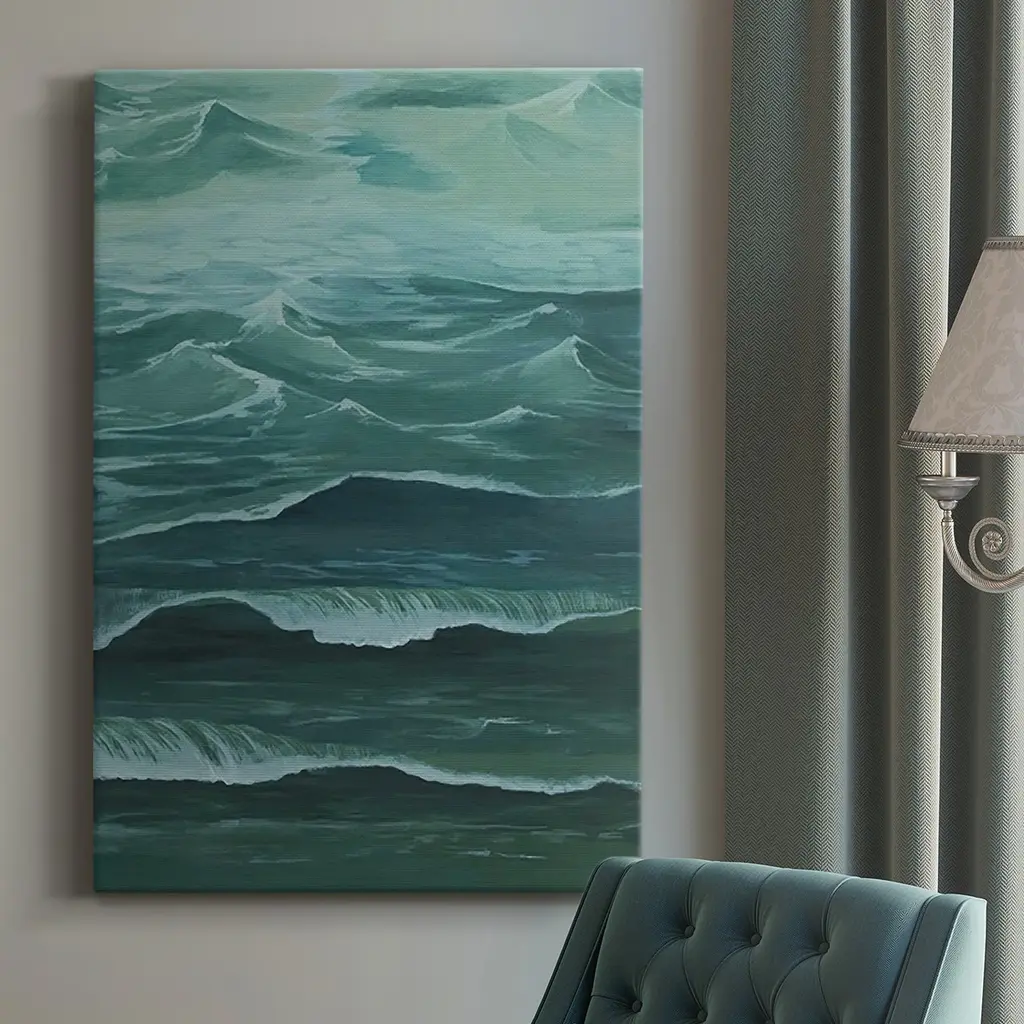 Transform your space with the serene and captivating "40X50 Laguna Waves With White Frame". This beautiful piece of framed art captures the essence of the ocean, bringing a touch of coastal charm to your home. The blue, green, and white hues create a calming atmosphere, perfect for any room.