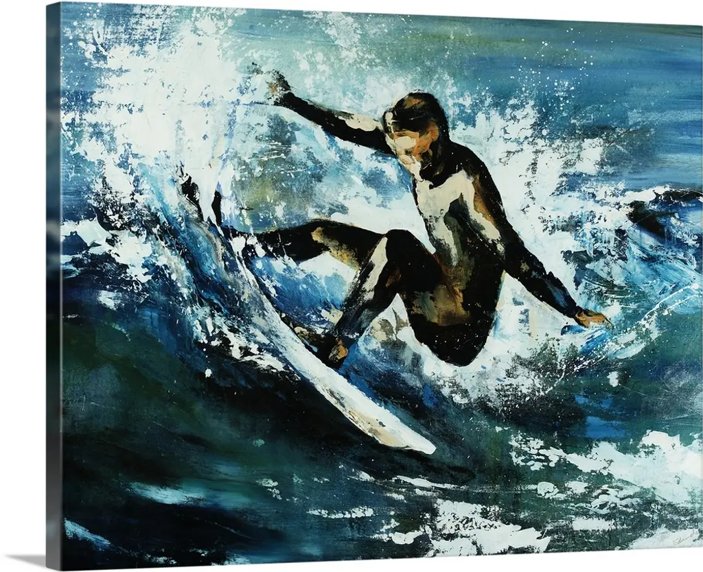 40"x50" Modern Big Wave With Gallery Wrap | Scenic | Print | Canvas Art | Horizontal