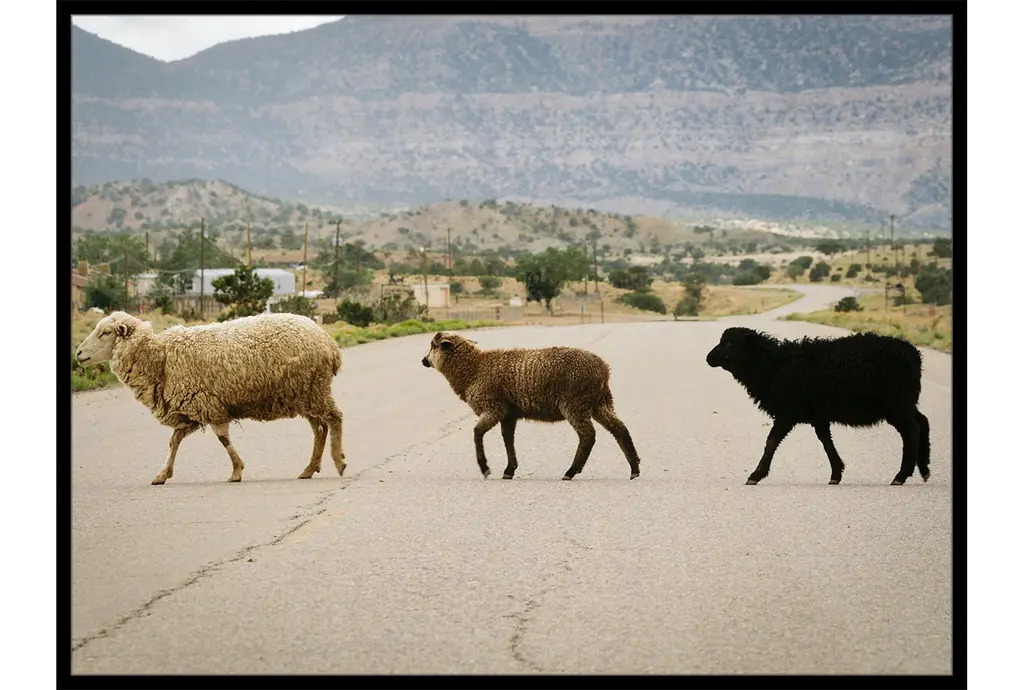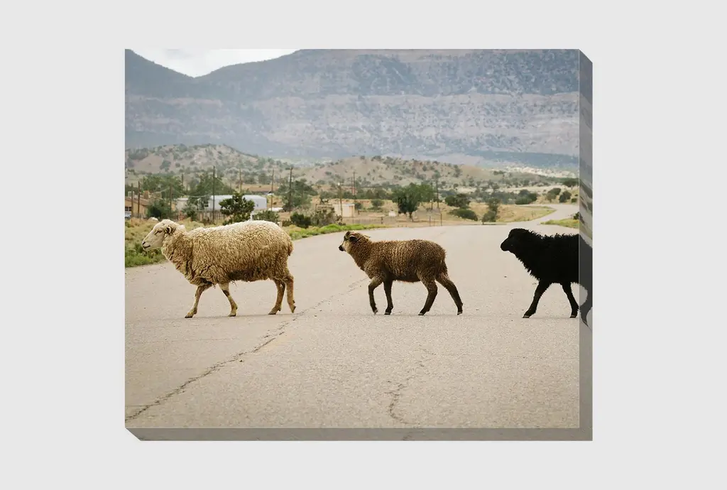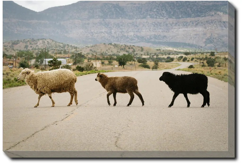 40"x50" Sheep Crossing With Black Frame | Framed Canvas Art | Animals | Photography | Horizontal