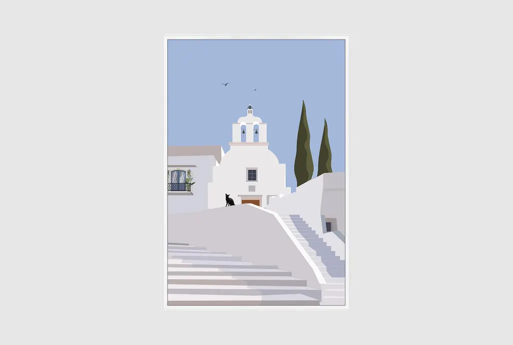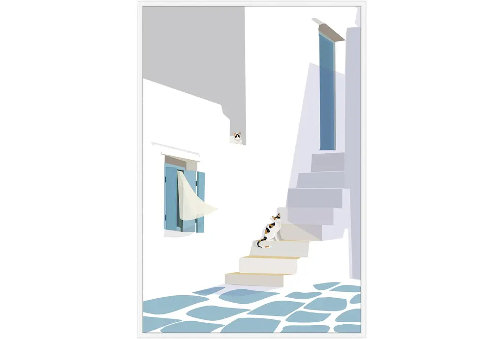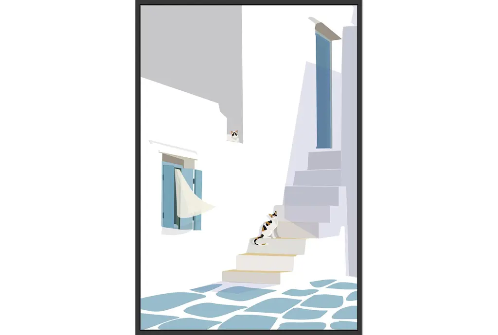 40x58 Santorini Ii With Dark Grey Frame | Vertical | Made In The Usa | Framed Art | Print | Architecture