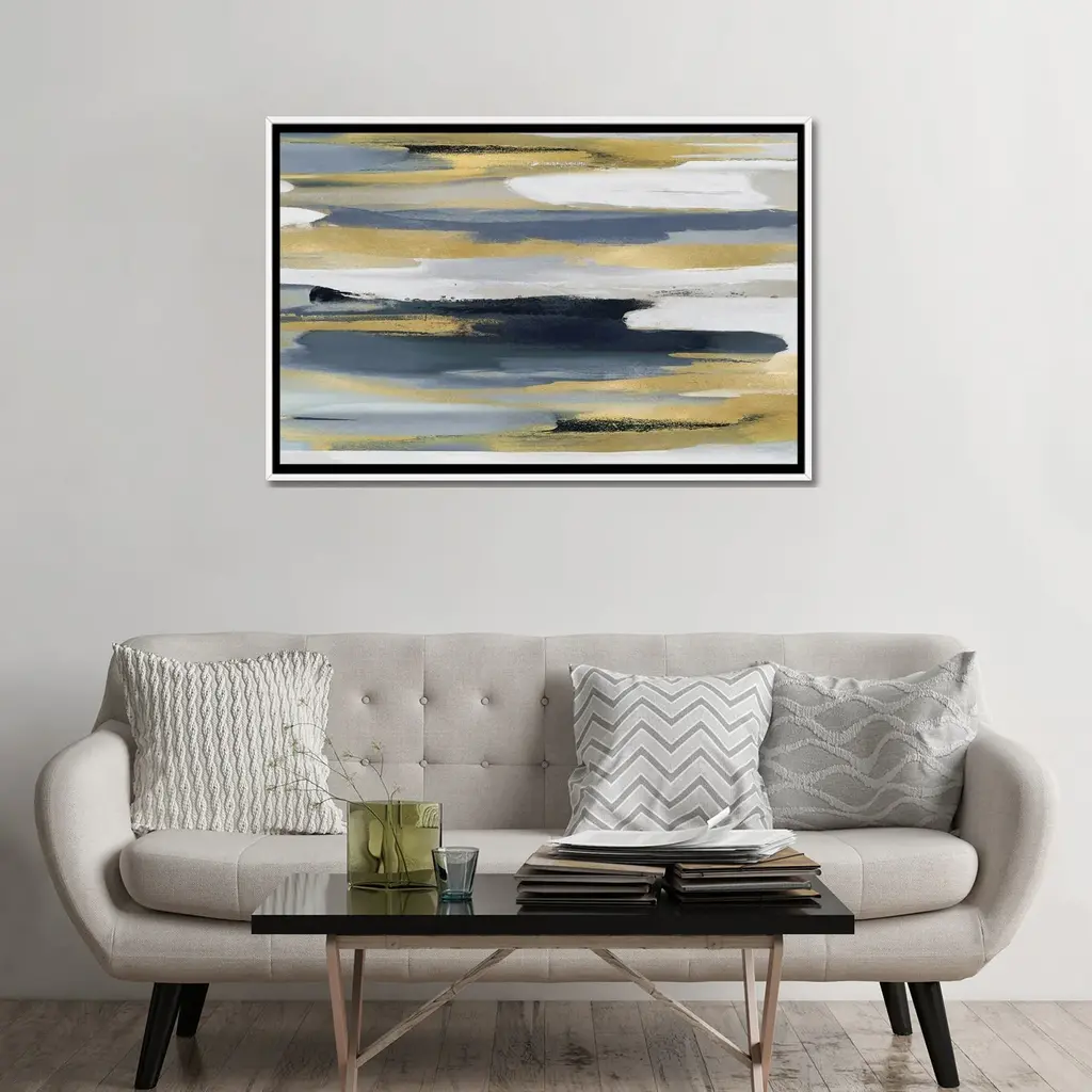 42x22 Shades Of Blue With White Frame | Made In The Usa | Print | Abstract | Framed Canvas Art | Horizontal