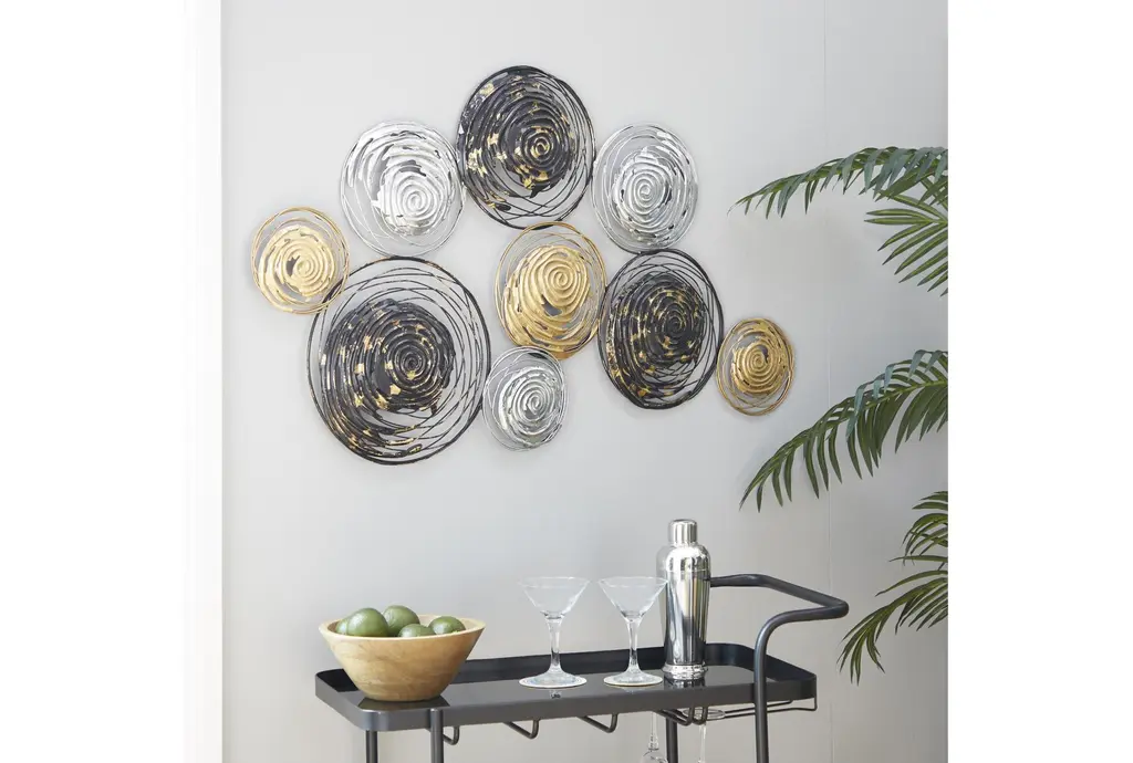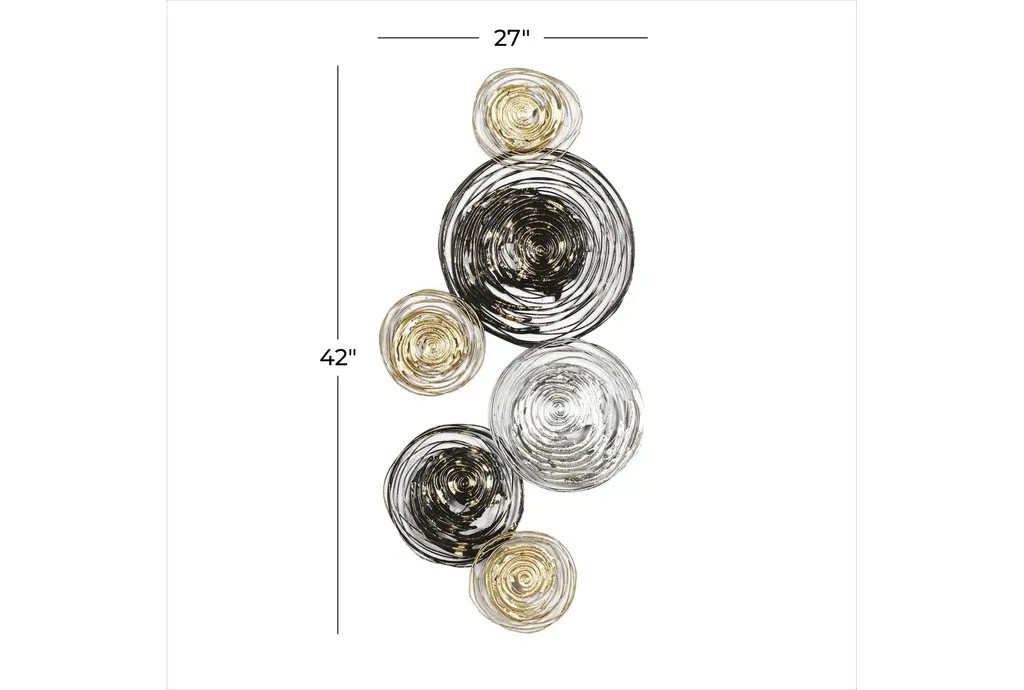 42x27 Multi Color Gold Black Metal Wall Decor | Curved | Round