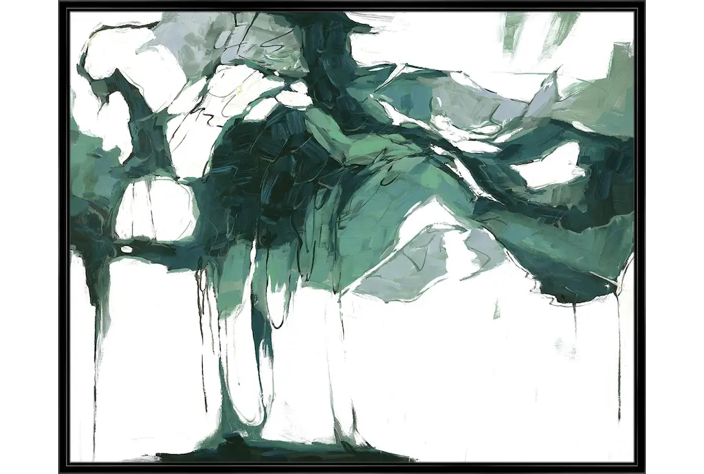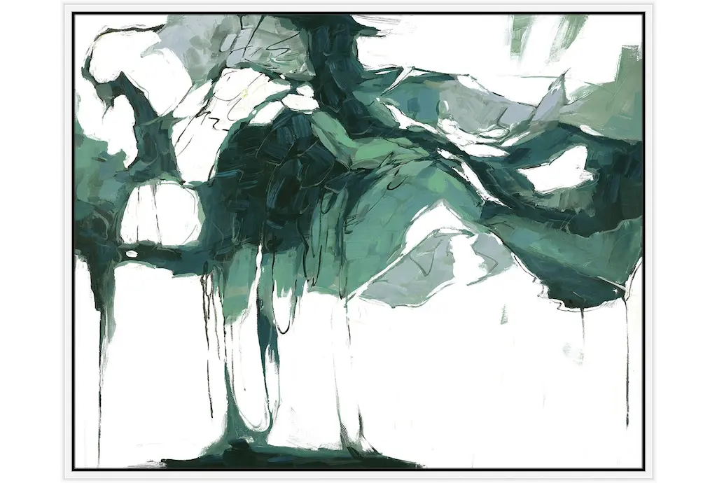 Enhance your office space with the 42X32 Abstract Emerald Isle. This striking piece of framed art features a modern design with a captivating blend of green and white hues. The horizontal orientation and rectangular shape make it an ideal addition to any contemporary setting.