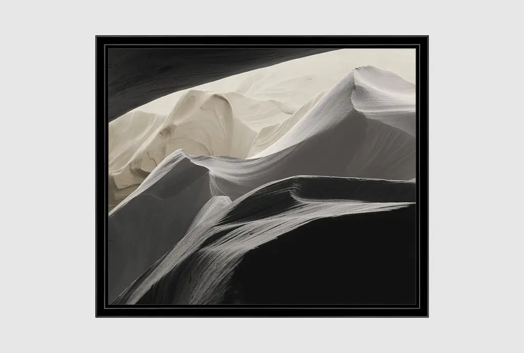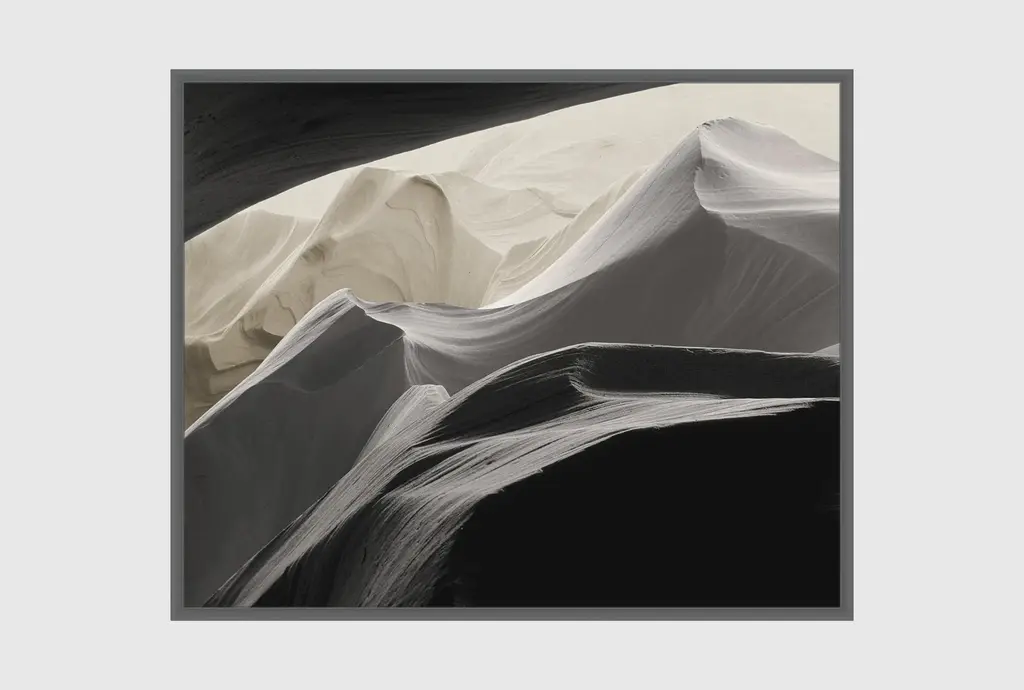 Enhance your space with the stunning 42X32 Grey Canyon With Birch Frame. This modern framed art piece features a scenic print that captures the beauty of natural landscapes in black and white hues. Made in the USA, this horizontal rectangle artwork is perfect for any contemporary setting.