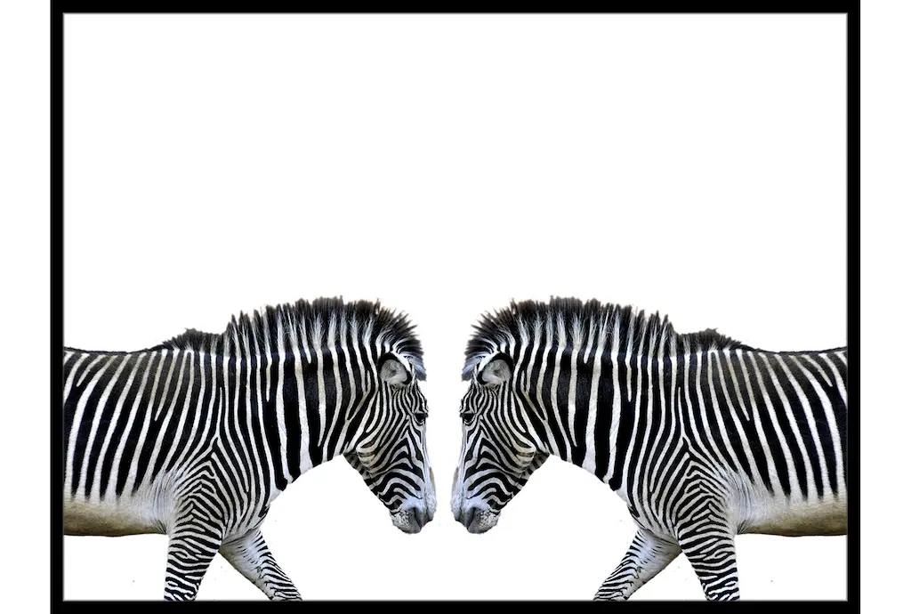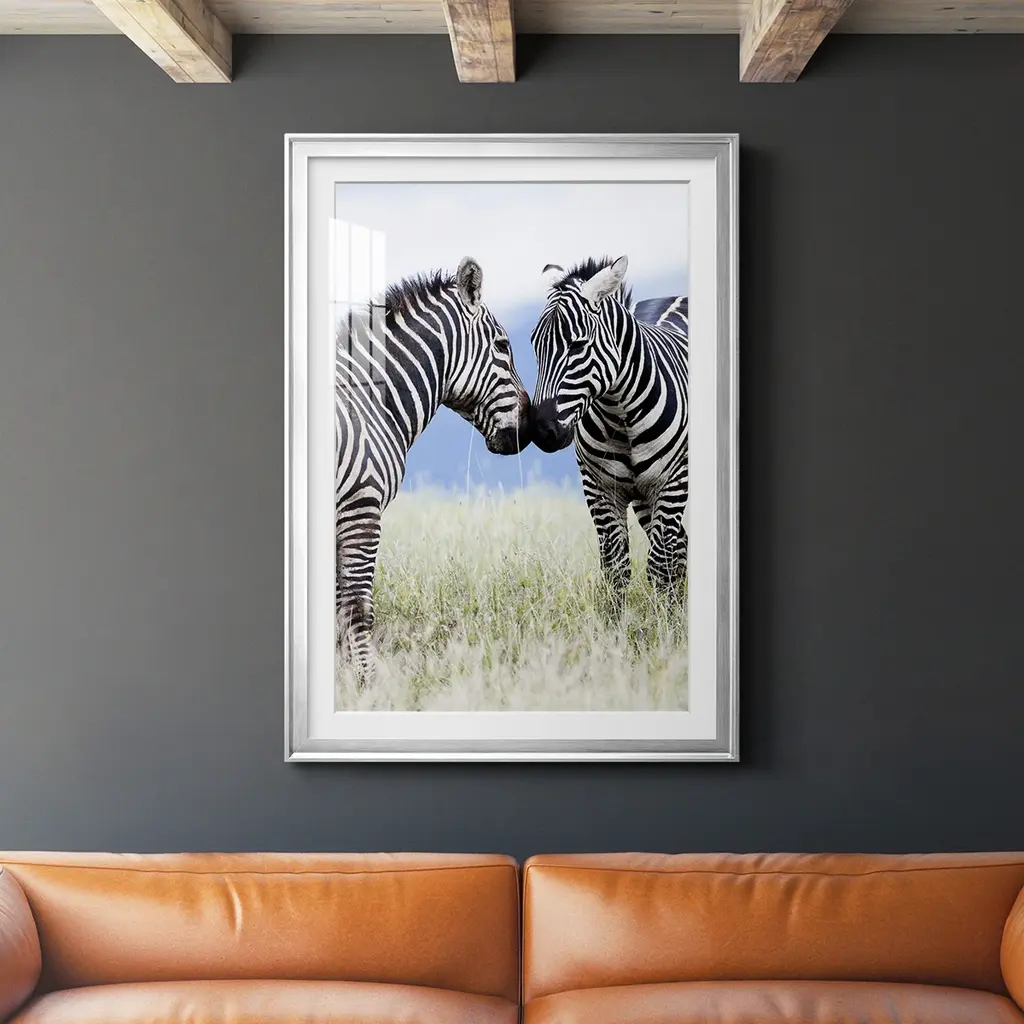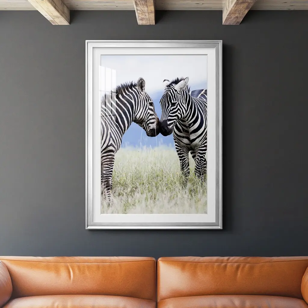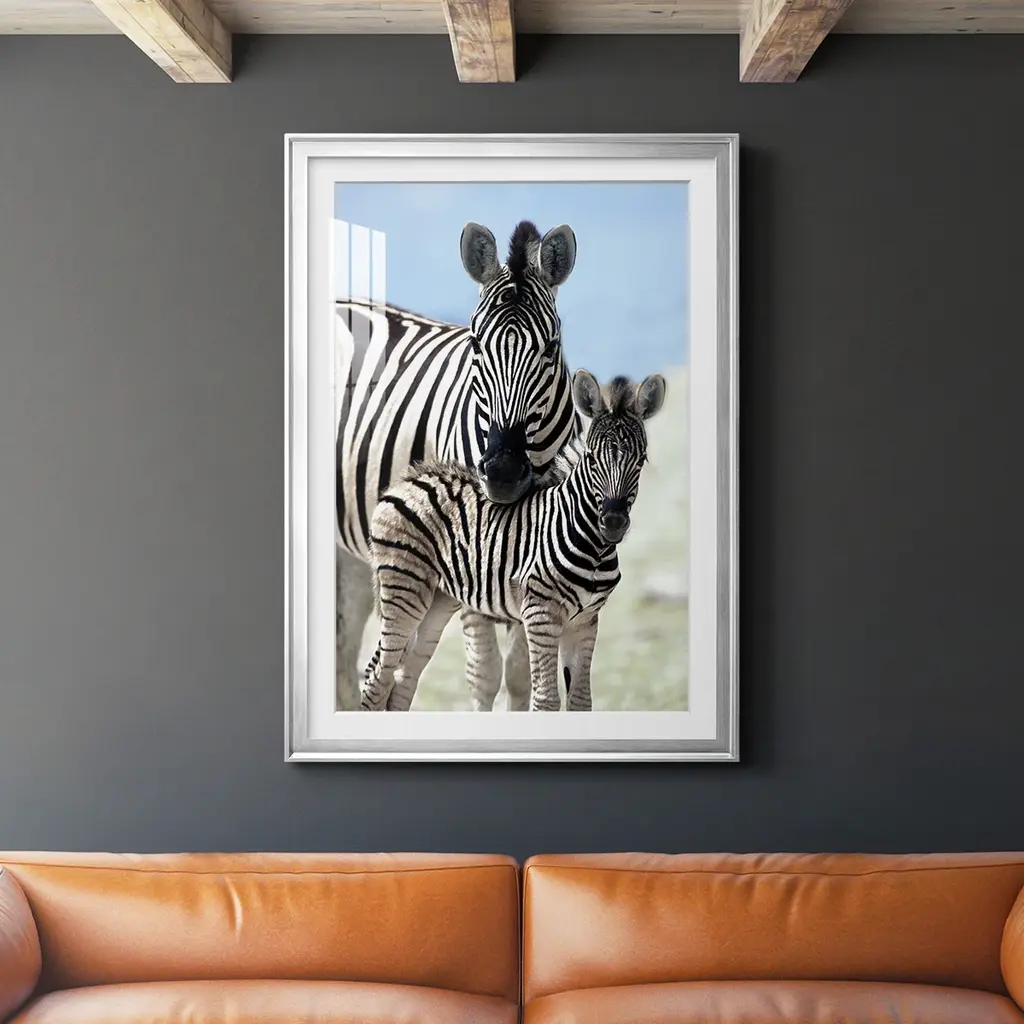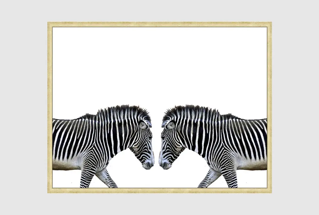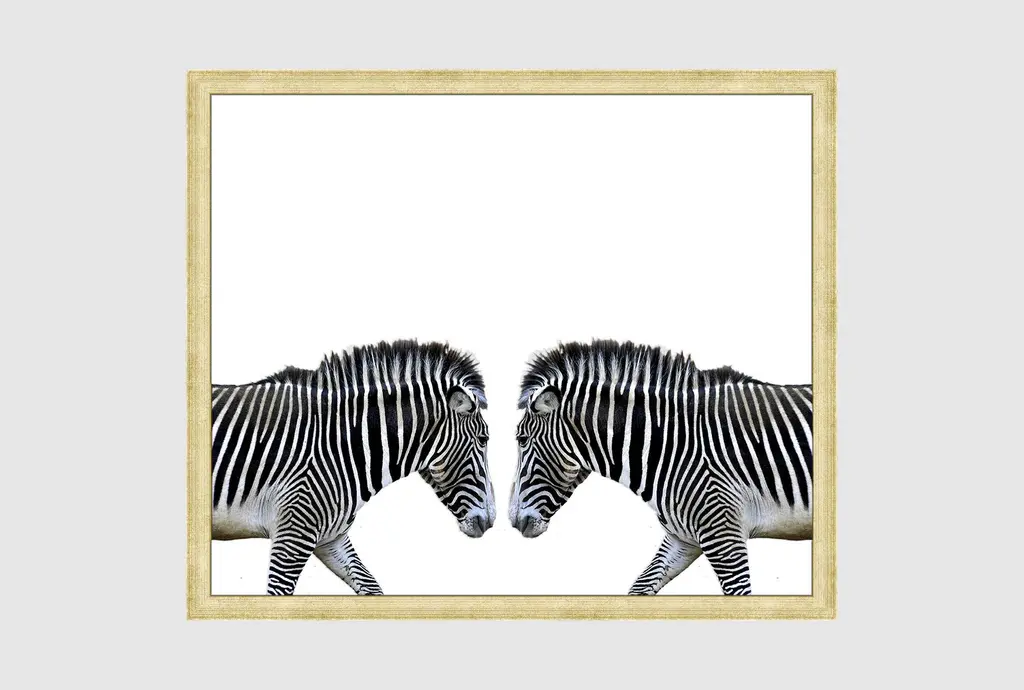 Bring an eye-catching piece to your home with the 42X32 Zebra Face Off With Black Frame. This framed art features a striking horizontal orientation that showcases two zebras in photorealistic detail. The combination of black and white colors against a canvas background adds to the rustic charm, making it a perfect addition to any room.