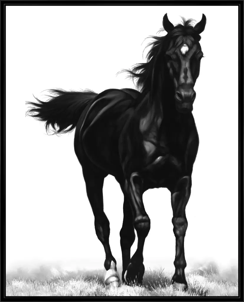42x52 B&w Strong Stallion | Black Frame | Rectangle | Animal Print | Tall | Framed Art | Animals | Made In The Usa | Vertical