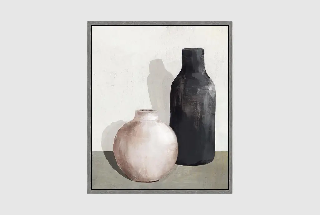 42x52 Black & Tan Pottery Ii With White Frame | Vertical | Framed Art | Fashion | Print