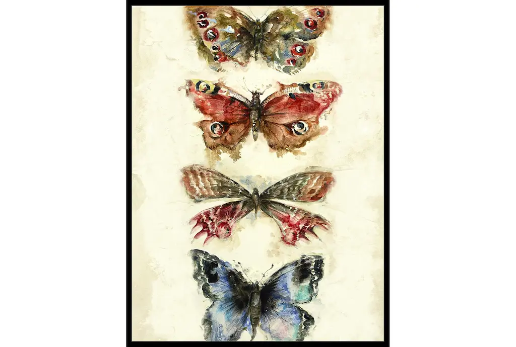 This beautiful 42X52 vertical framed art piece captures the vibrant colors of butterflies in flight. The traditional style print is perfect for adding a touch of nature to your nursery or any room. Made in the USA, this canvas artwork is framed in a gold frame, enhancing its visual appeal.