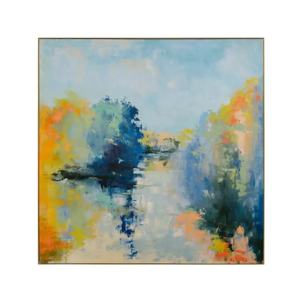 Enhance your living space with the 42X52 Colors Of Dusk II With Gold Frame, a stunning piece of vertical framed art. This modern abstract print features a captivating blend of turquoise and black hues on canvas, creating a mesmerizing depiction of natural scenery. Perfect for adding a touch of contemporary flair to your office or living room, this large rectangular artwork is proudly made in the USA.