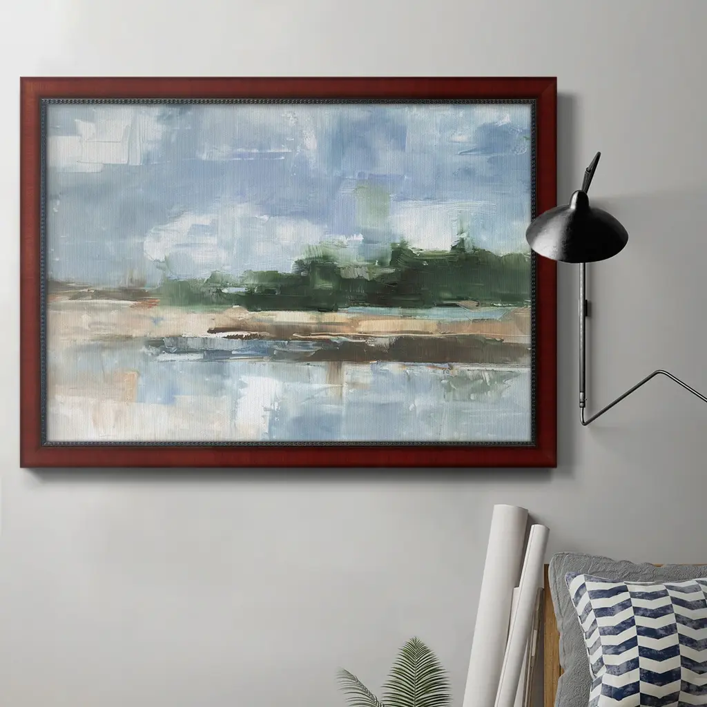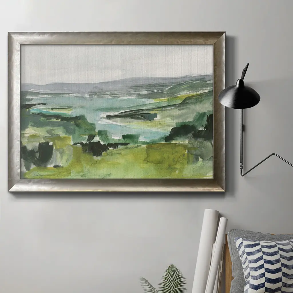 Enhance your living space with the Green Meadows II framed canvas art. This traditional print brings a serene and scenic view to any room, offering soft colors of green and brown. The stretched canvas is beautifully complemented by a black floater frame, making it a timeless addition to your home decor.