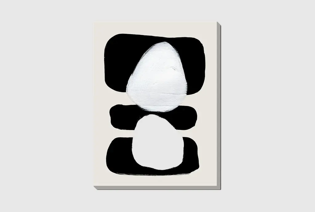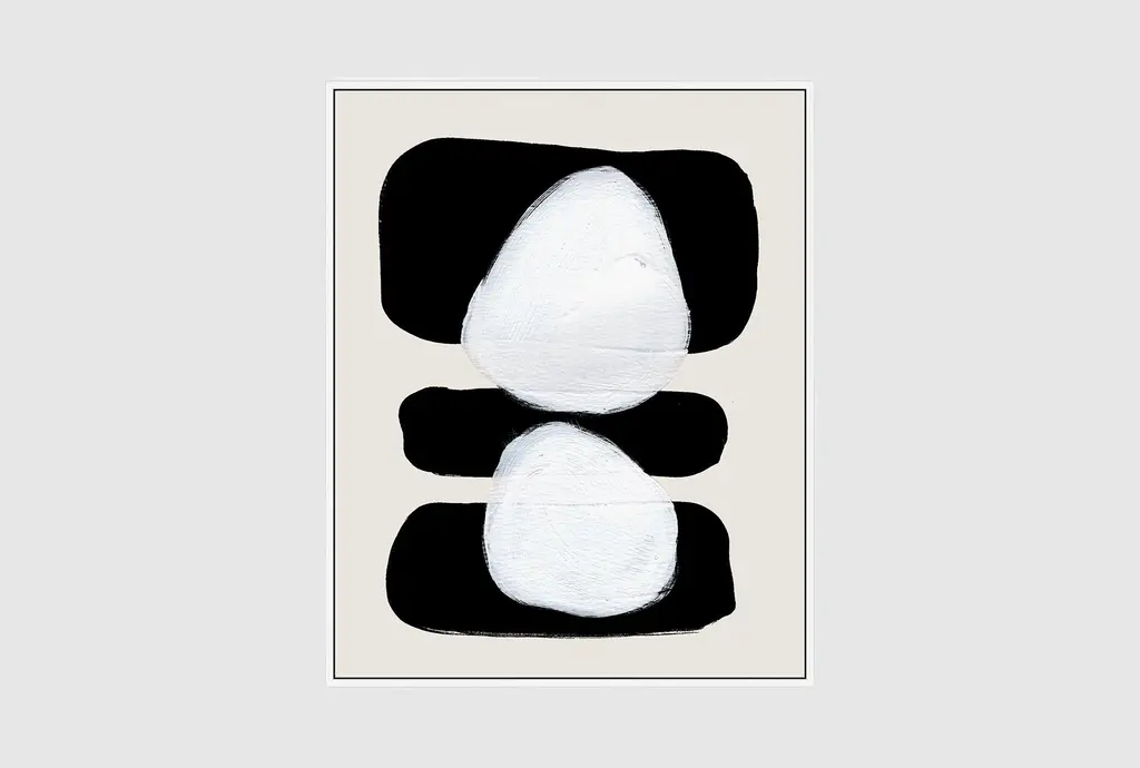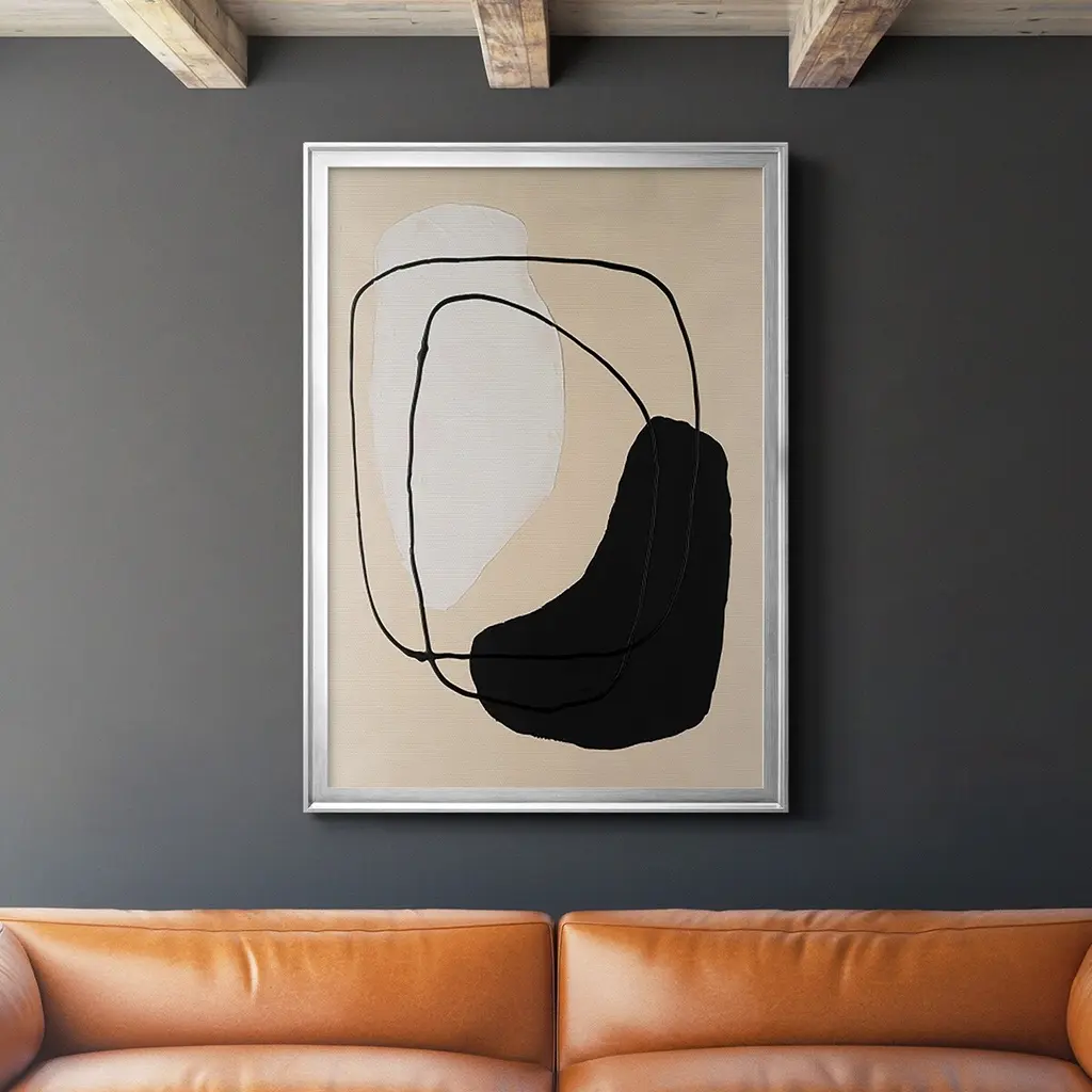 Add a touch of modern sophistication to your space with the 42X52 Modern Objects II With Black Frame. This vertical framed abstract art print features a striking combination of black, white, and beige colors on canvas, making it a perfect centerpiece for any room.