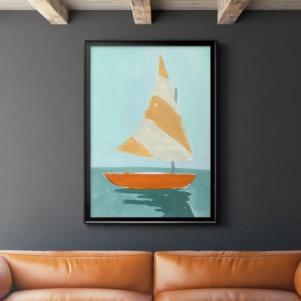 Immerse your space in a nautical vibe with this 42X52 Sailboat Line Drawing. The blue and white hues of the sailboat art create a serene and coastal atmosphere. This vertical framed art piece is perfect for adding a touch of the sea to any room.