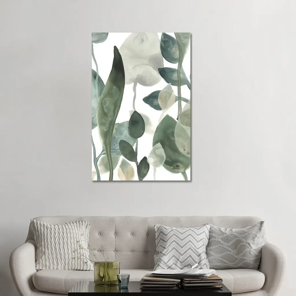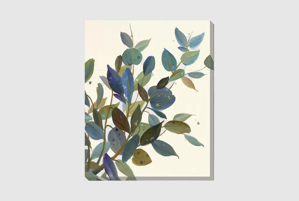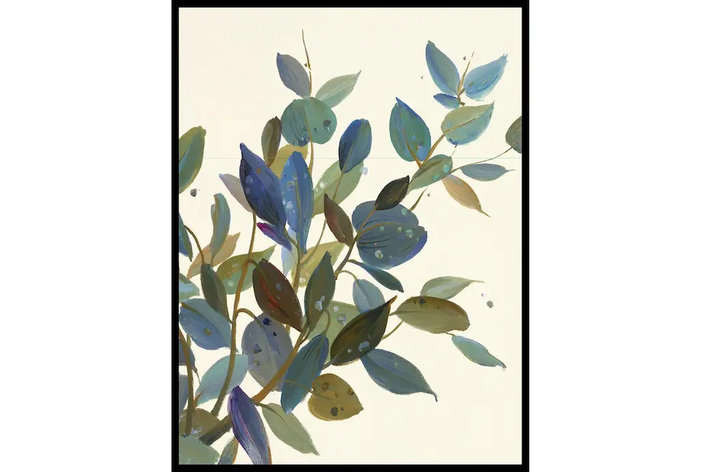 Bring the beauty of nature indoors with the 42x52 Watercolor Eucalyptus II Floral framed art. This stunning vertical botanical print features soothing shades of blue, green, and beige on canvas. Perfect for adding a touch of tranquility to your bedroom or any living space.