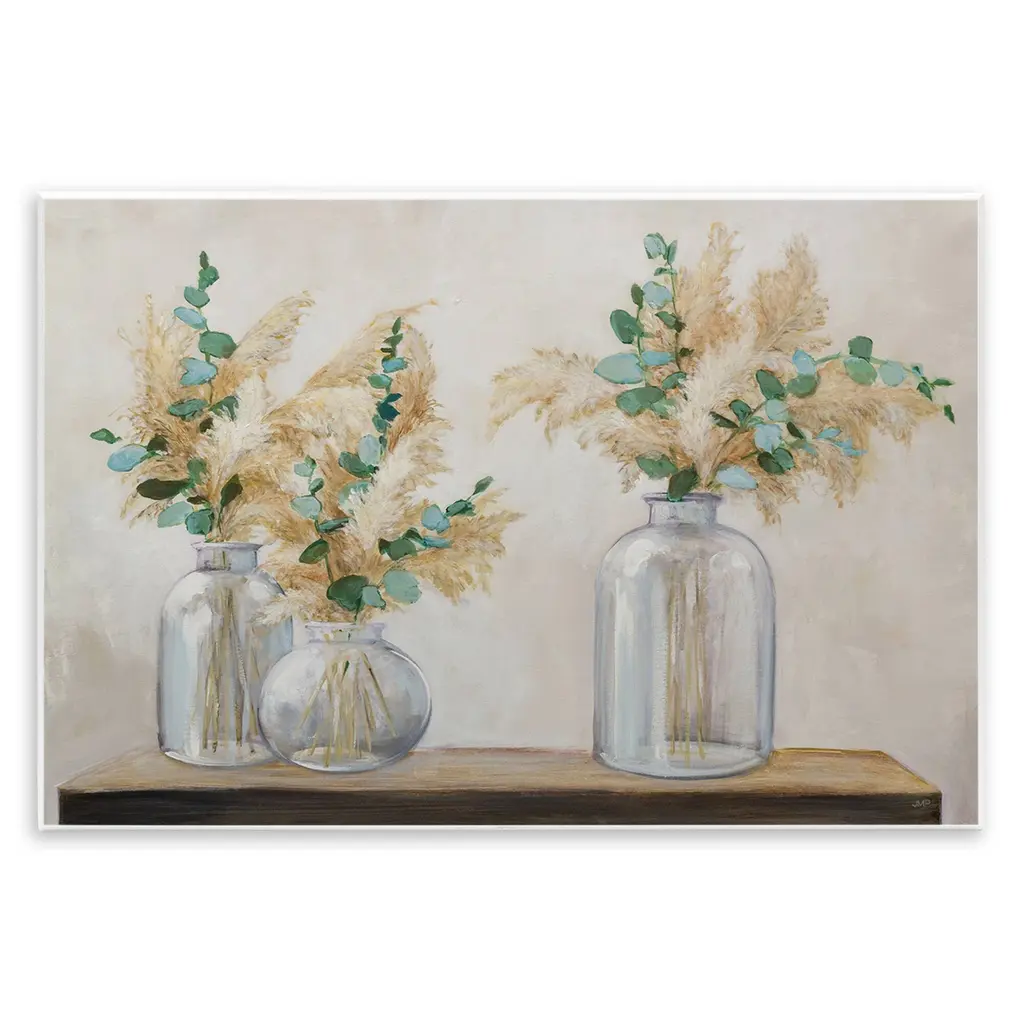 44x34 Pampas In Green Pots With Gold Frame | Botanical | Made In The Usa | Framed Art | Print | Horizontal